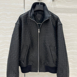 BV Double-Zip Baseball Jacket in Black Lambskin