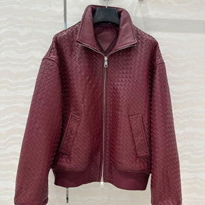 BV Double-Zip Baseball Jacket in Burgundy Lambskin