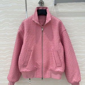 BV Double-Zip Baseball Jacket in Pink Lambskin