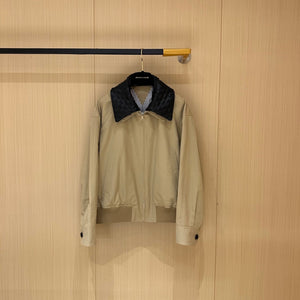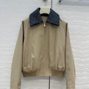BV Leather Neck Zipped Jacket in Beige Fabric