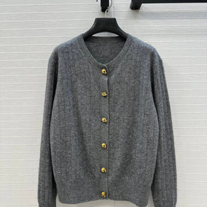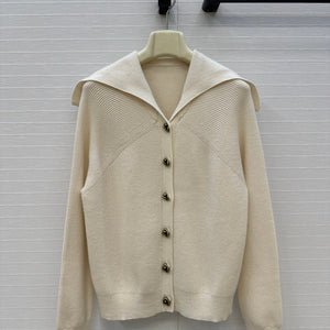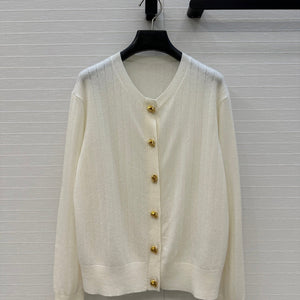 CC 25 Fishtail V-Neck Knitted Long-sleeved Cardigan White Wool