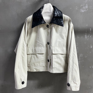 BV 25S Jacket Sheepskin Neck in Beige Cotton