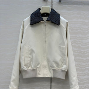BV 25S Jacket Sheepskin Neck in White High-Weave Fabric