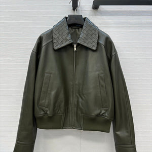 BV Double-Zip Baseball Jacket in Chocolate Lambskin