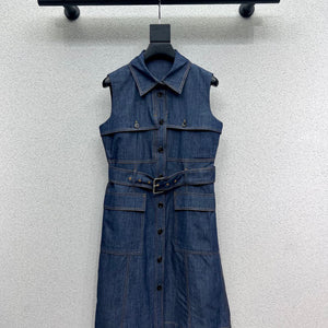 BV V-neck Rolled-Up Sleeve Dress in Light Blue Tencel