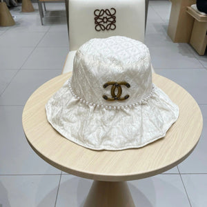 STRAW BUCKET HAT WHITE WITH PEARLS 672764