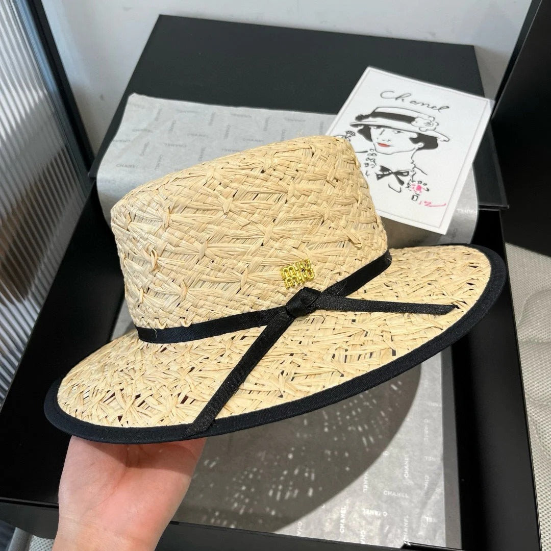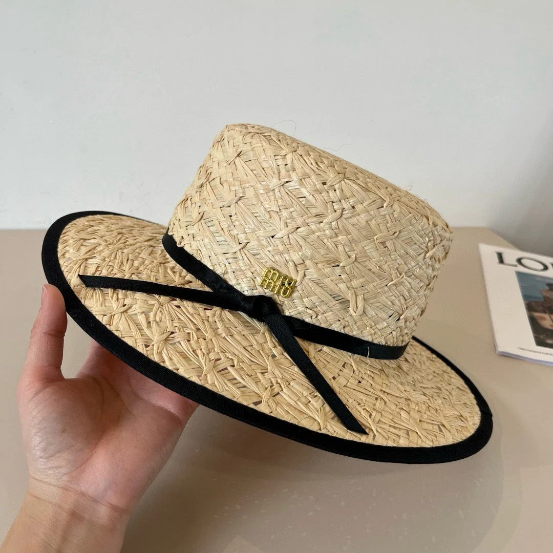 MM STRAW HAT IN BEIGE RAFFIA MIX BLACK FABRIC TRIM