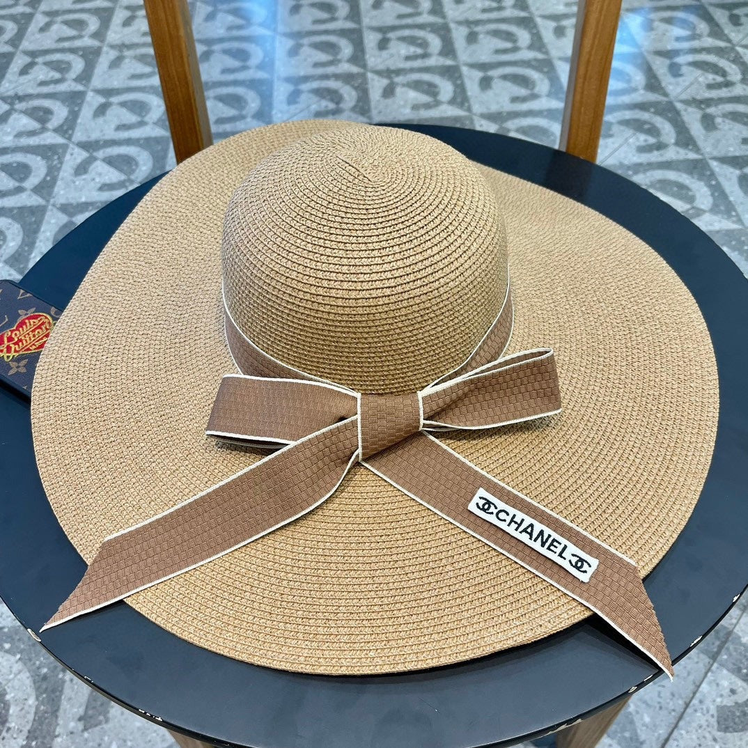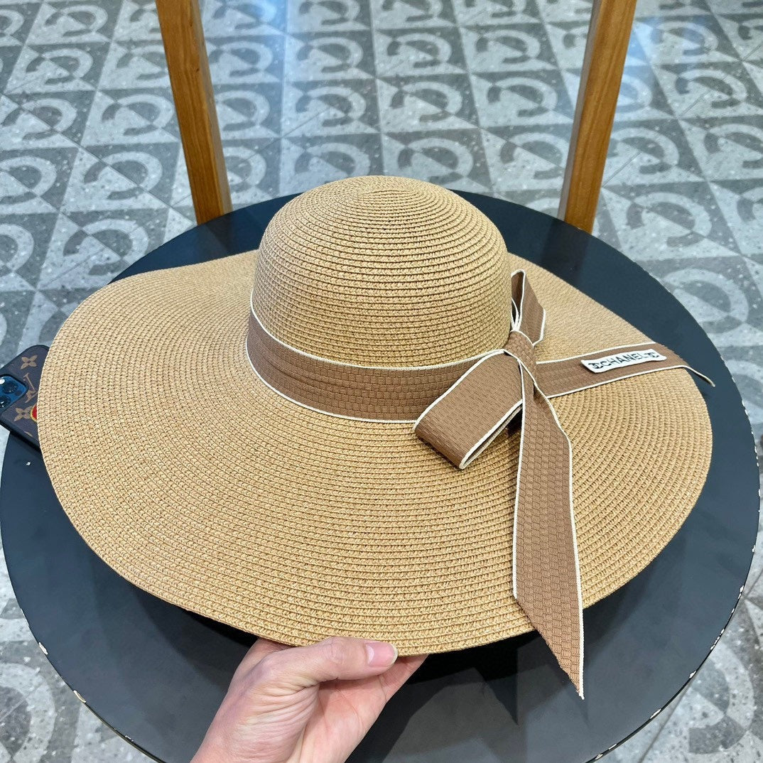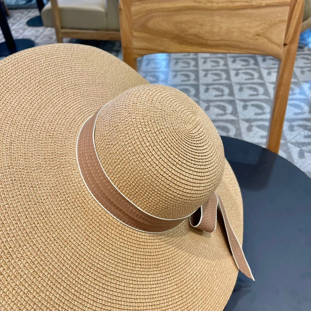 WIDE BRIM STRAW HAT WITH BOW BROWN 672705