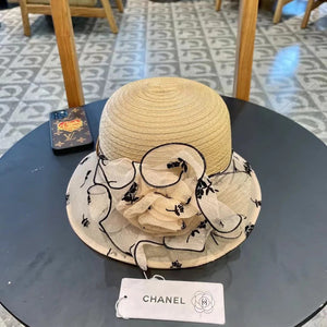 STRAW HAT WITH CHIFFON FLOWER BLACK 672760