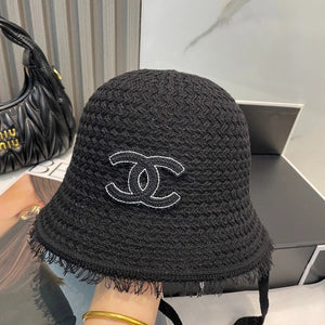 FLAT STRAW HAT BLACK AND WHITE 673935