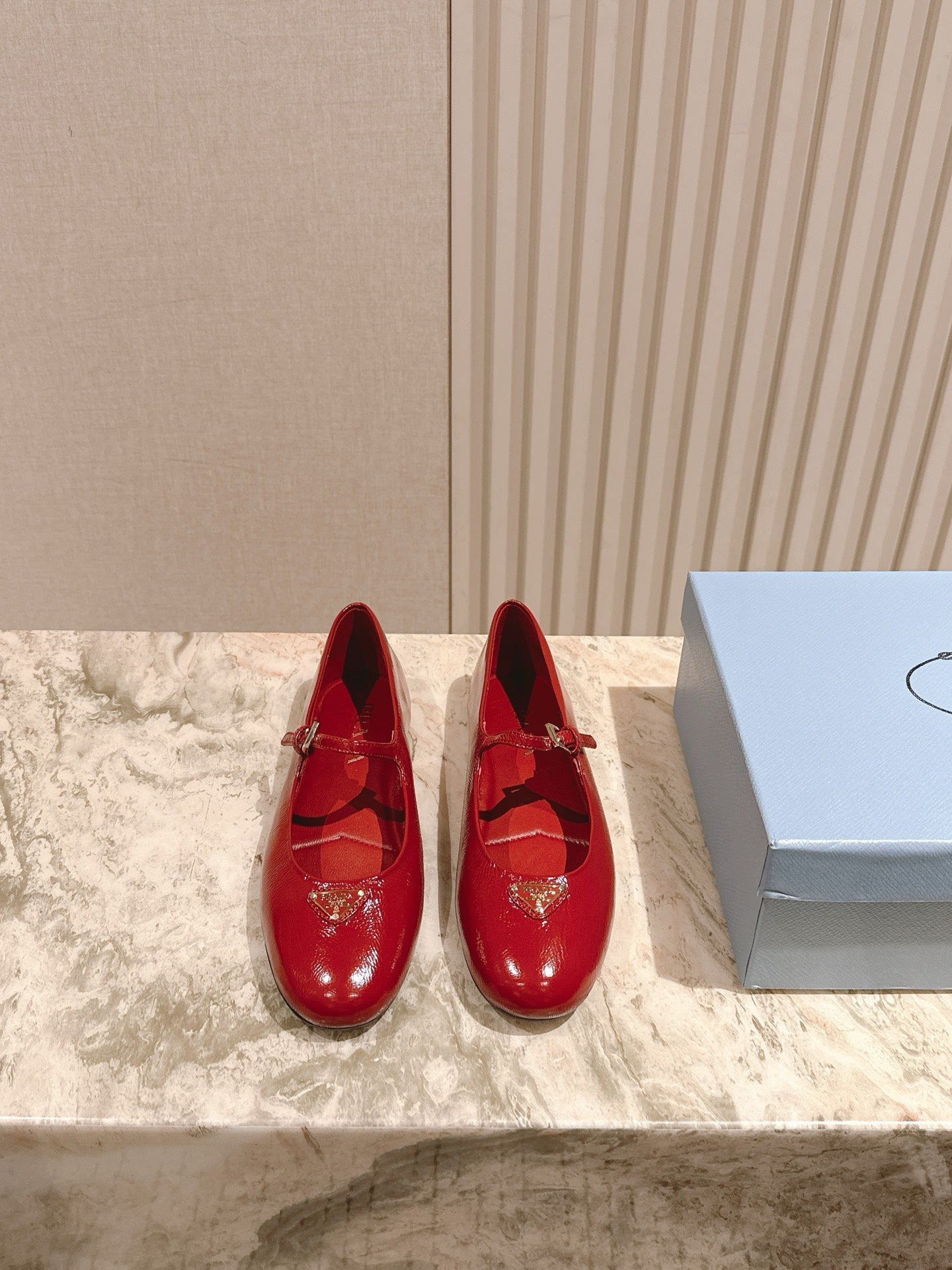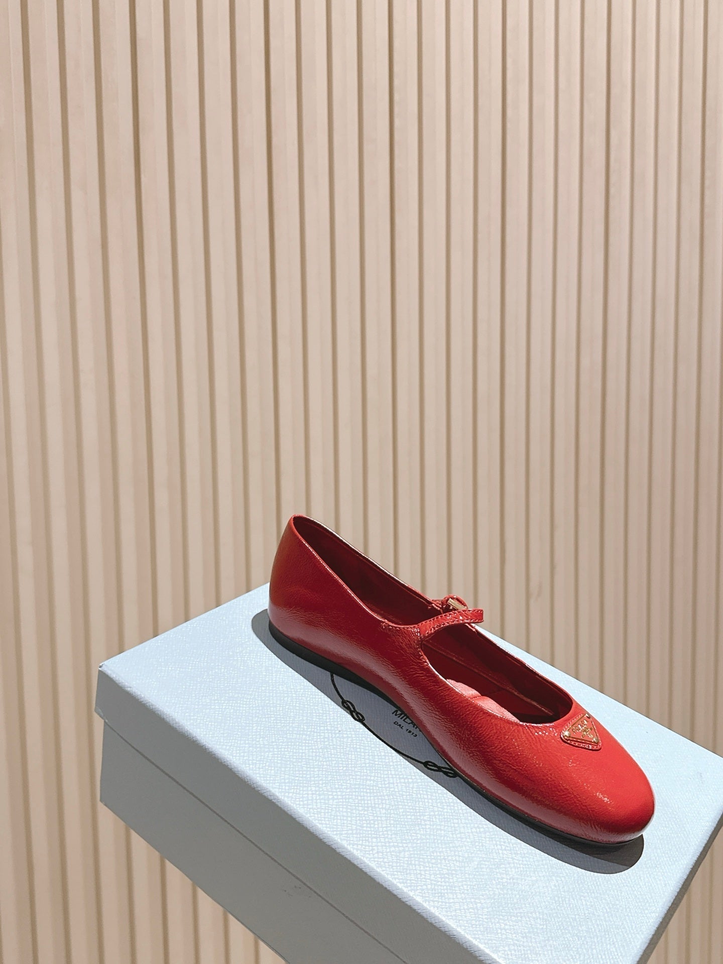 PRA 25s Ballet Flats with Small Buckle Red Shiny Cowhide 449712