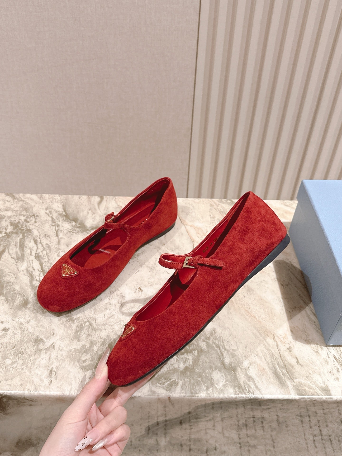 PRA 25s Ballet Flats with Small Buckle Red Suede 449709