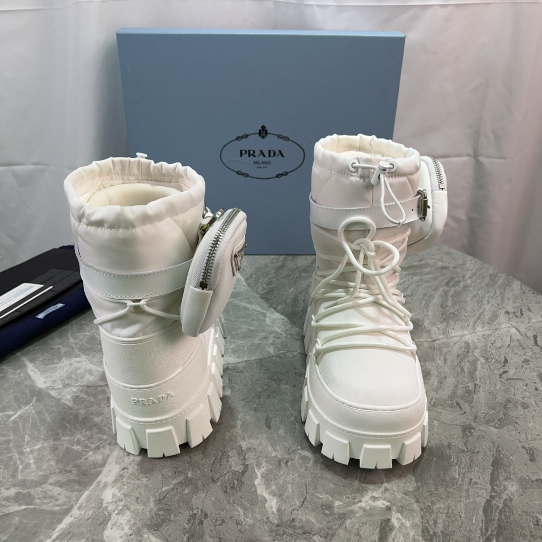 PRA Logo-Plaque Snow Boots With Pouch White Recycled Polyamide Cowhide Black