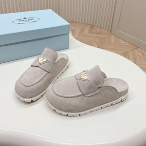 Pra Beige Suede Leather Mule 25mm Rubber Sole