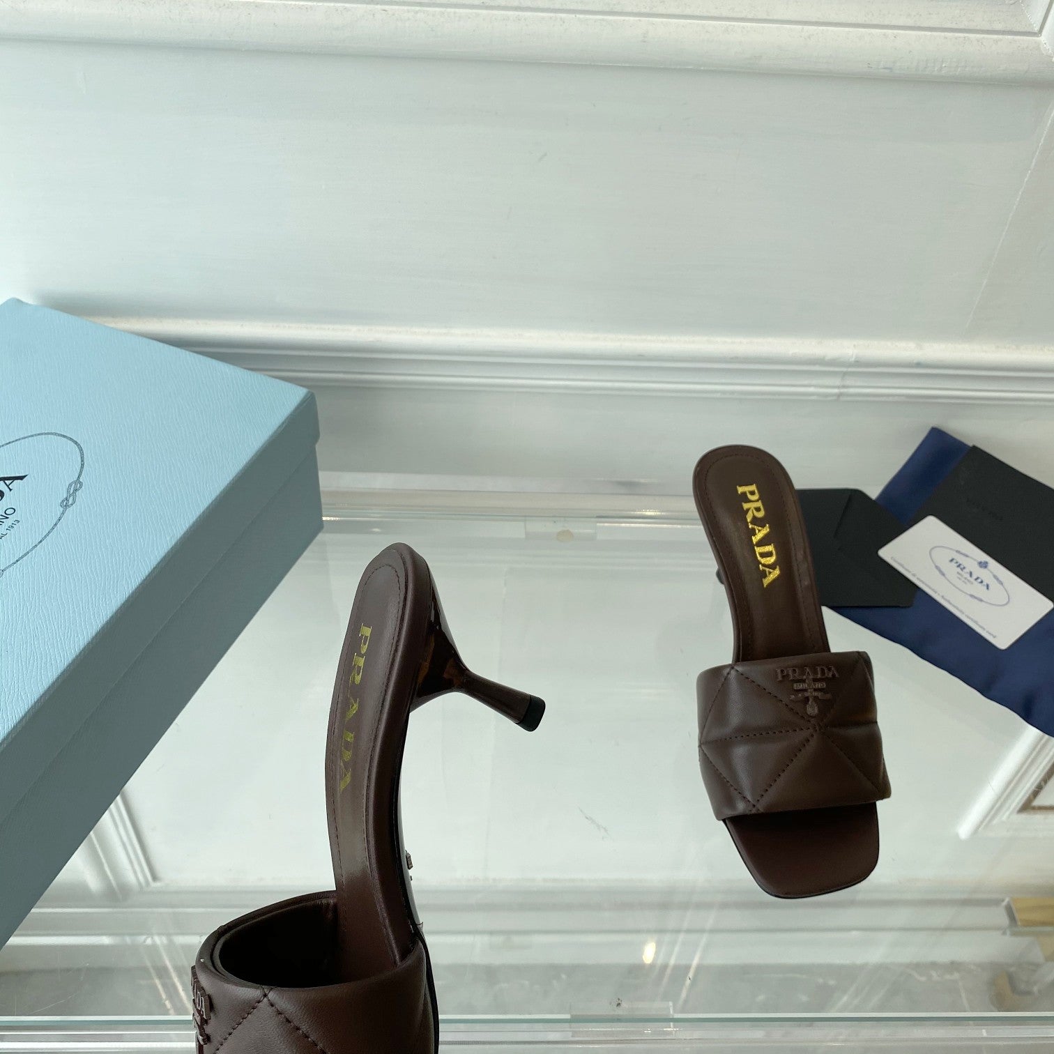 Pra Heeled Sandal 65 Pointed Sole Quilted Chocolate Leather