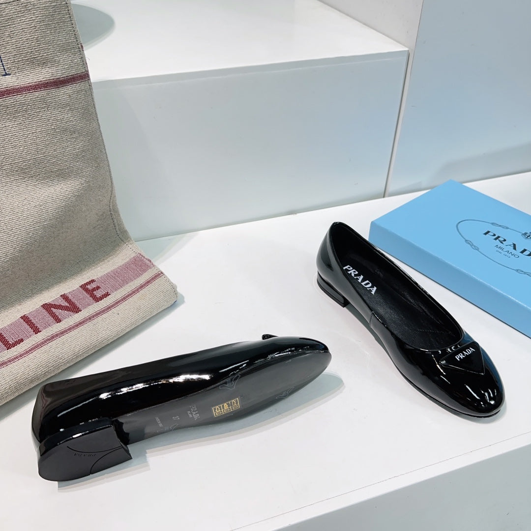 PRA BASIC PATENT BALLET FLATS BLACK CALFSKIN