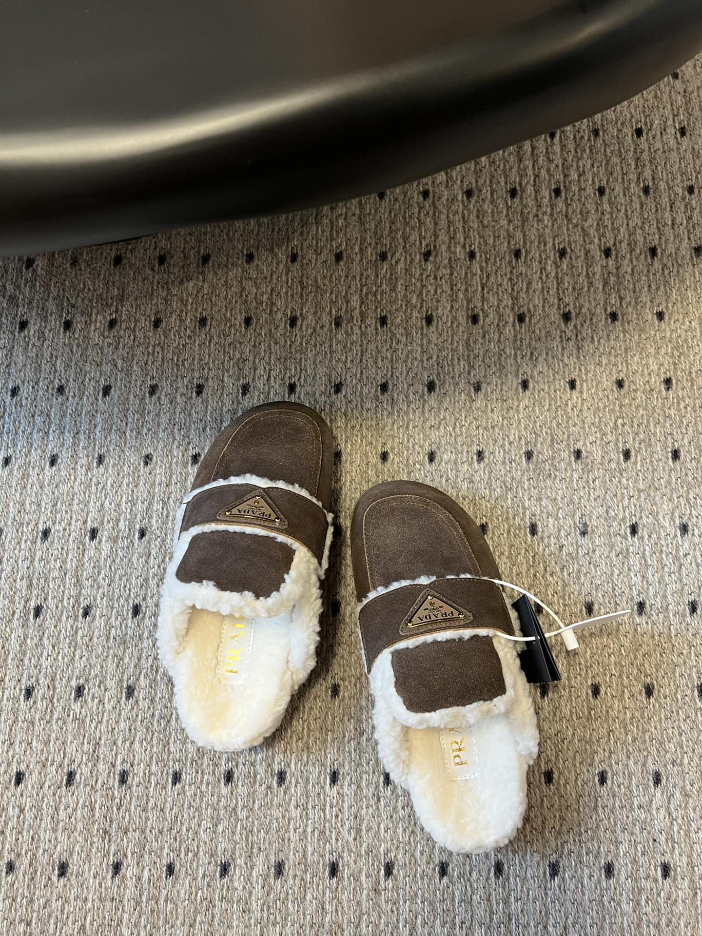 Pra Slippers Dark Brown Suede & Shearling 478565