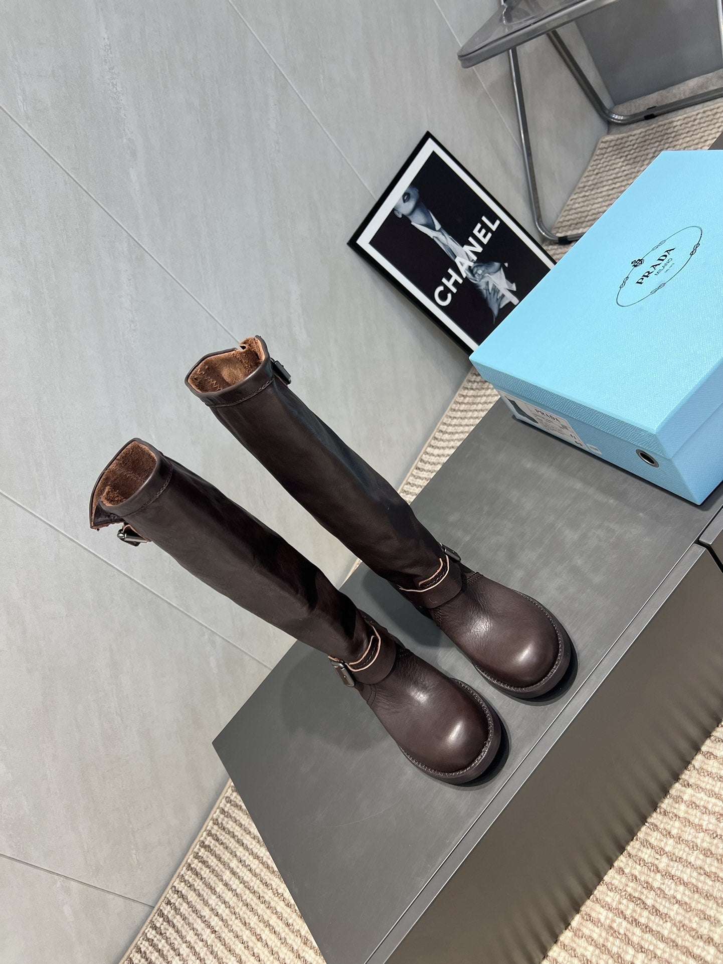 Prada 25 Boot 30mm Black Chocolate Cowhide 501664