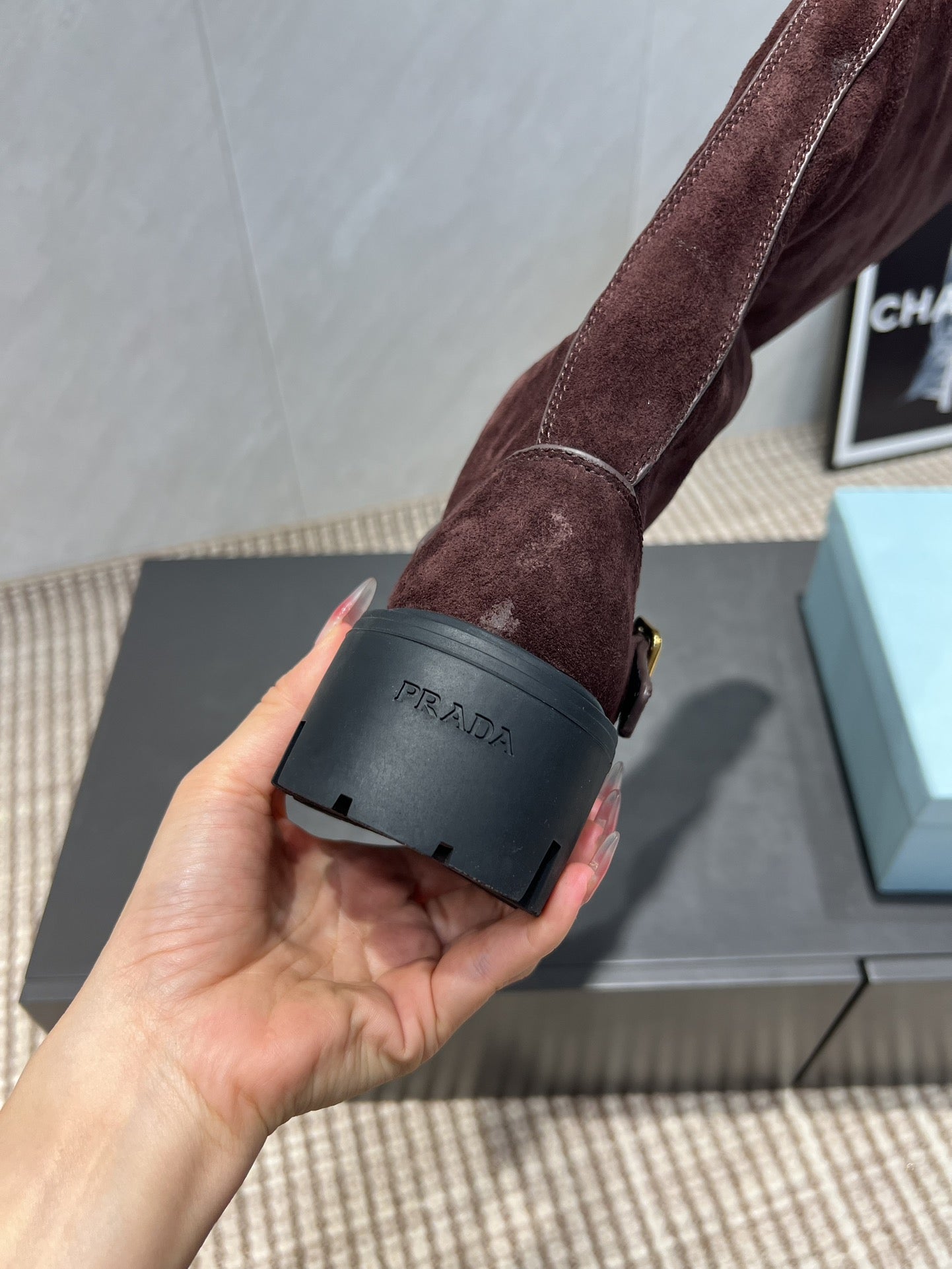 Prada 25 Boot Brown Black Suede 501669