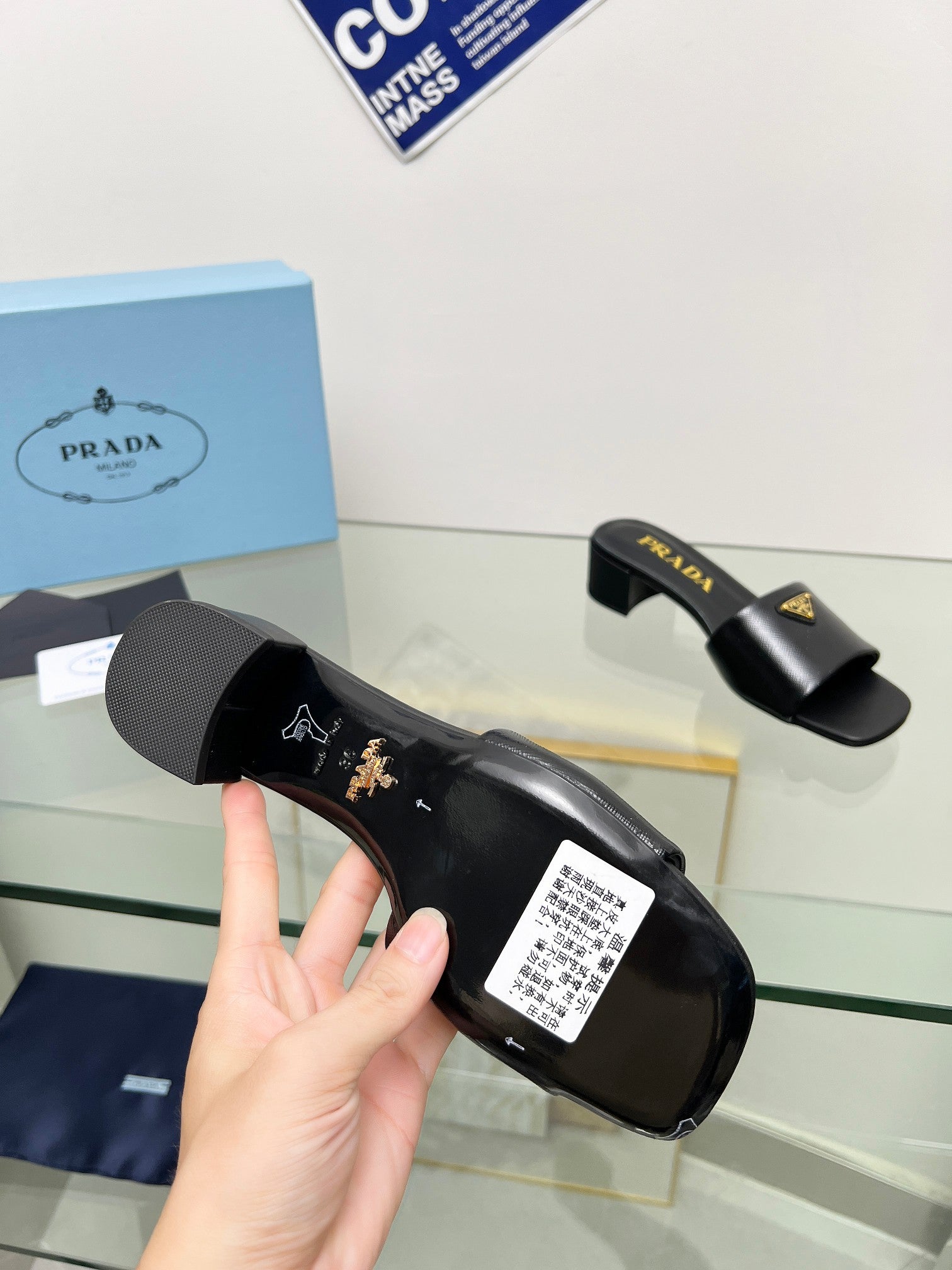 PRA EMBROIDERED SLIDES 40 BLACK CALFSKIN