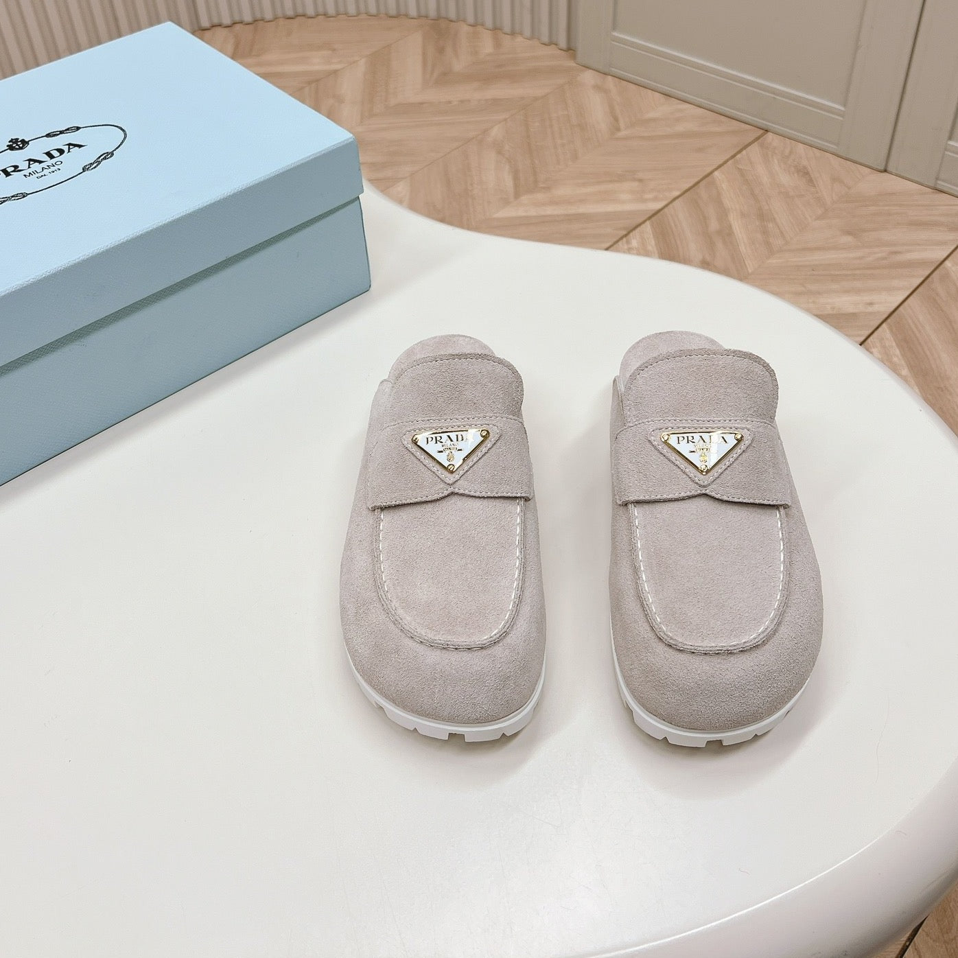 PRA SABOTS MULES LIGHT GRAY SUEDE