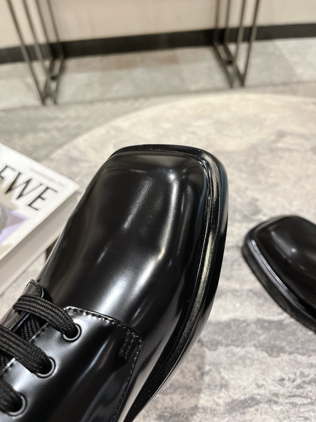PRA SQUARE HEAD LACE-UP LOAFERS JET-BLACK CALFSKIN