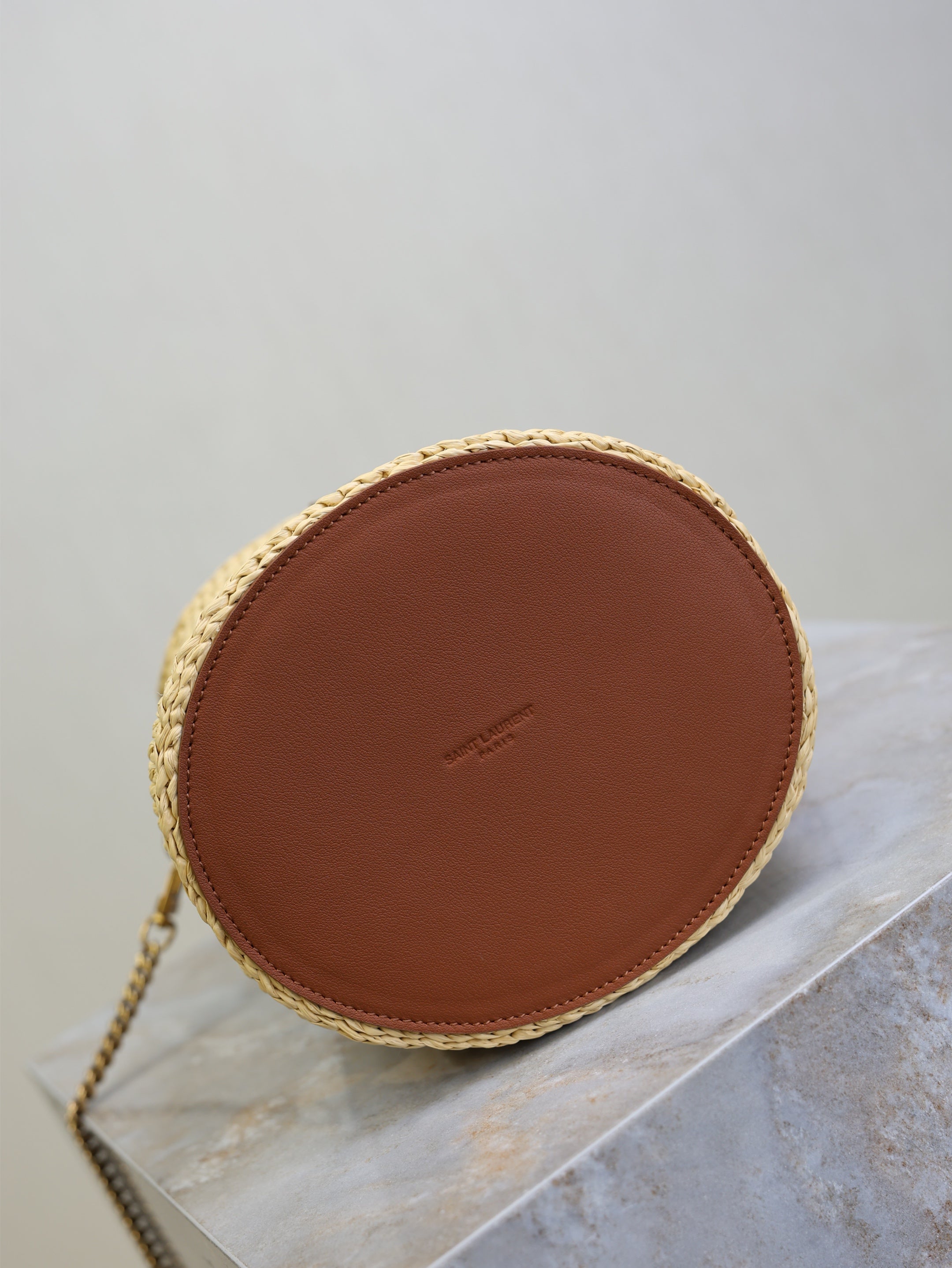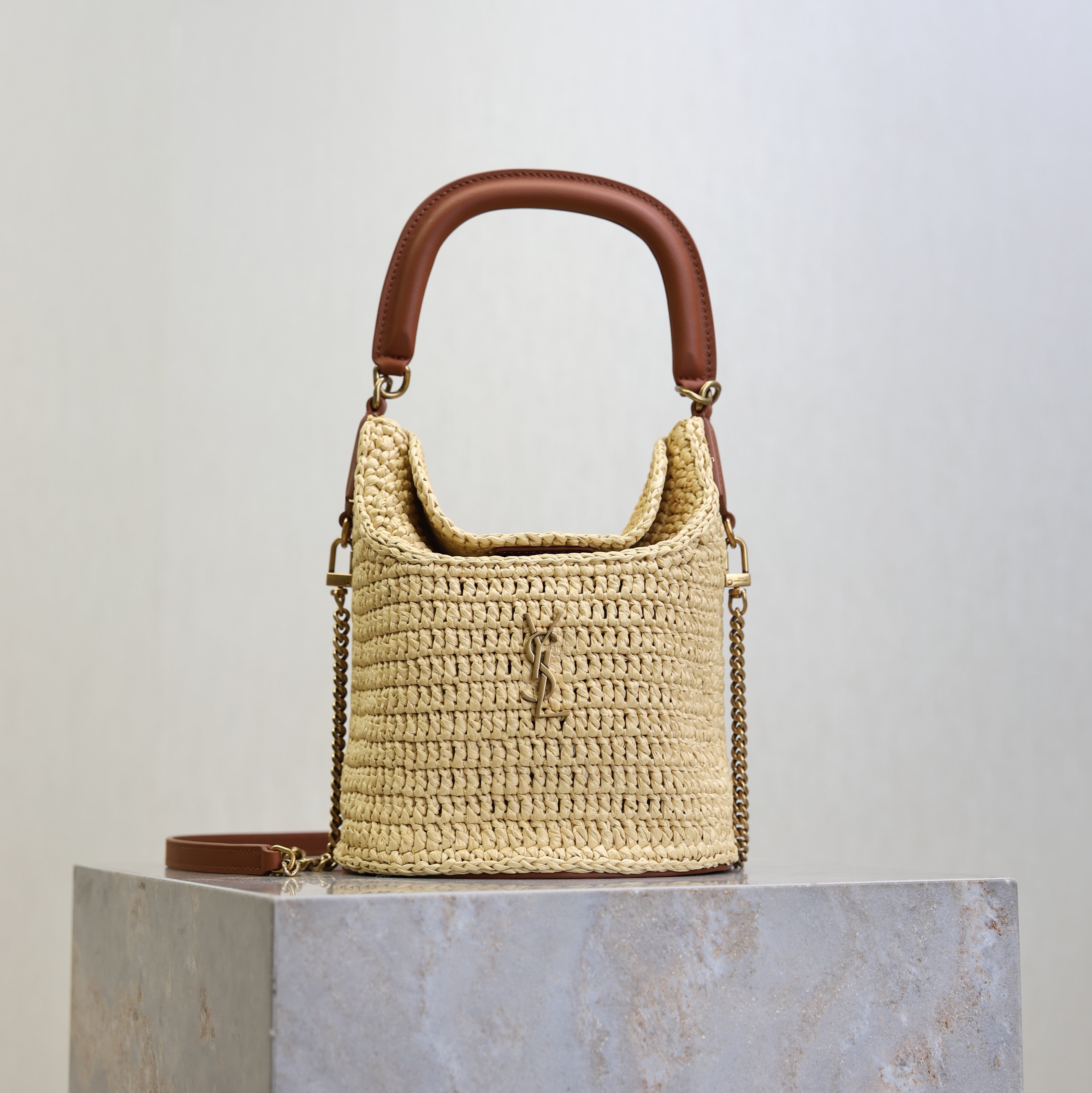 Prada Gaby Bucket 17cm Brown Beige Raffia Leather GHW