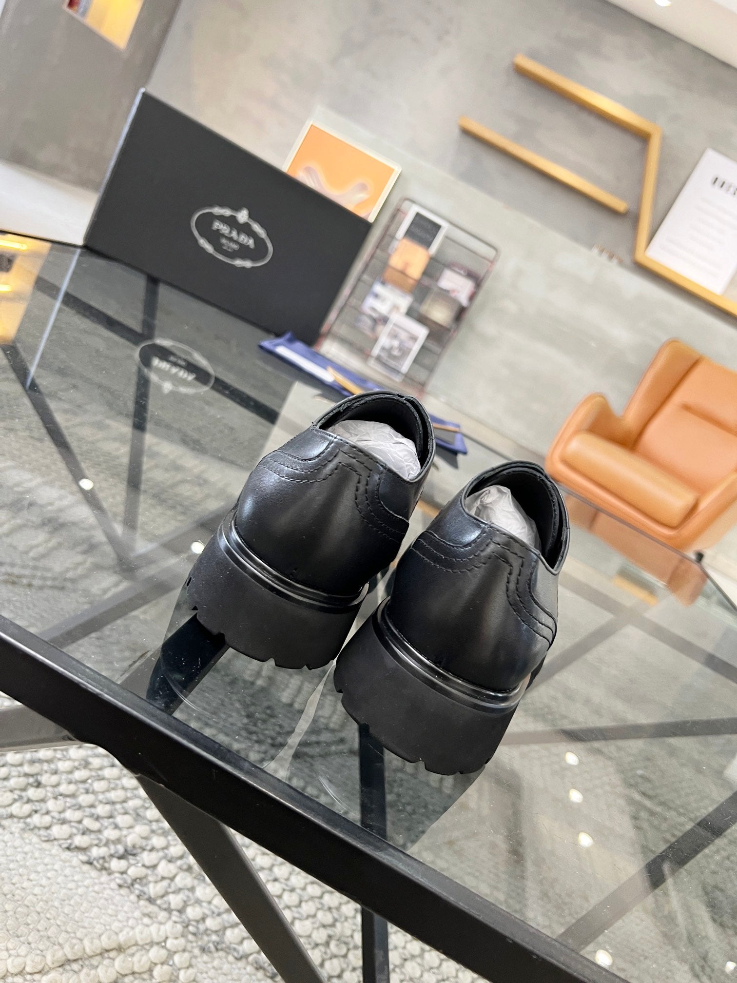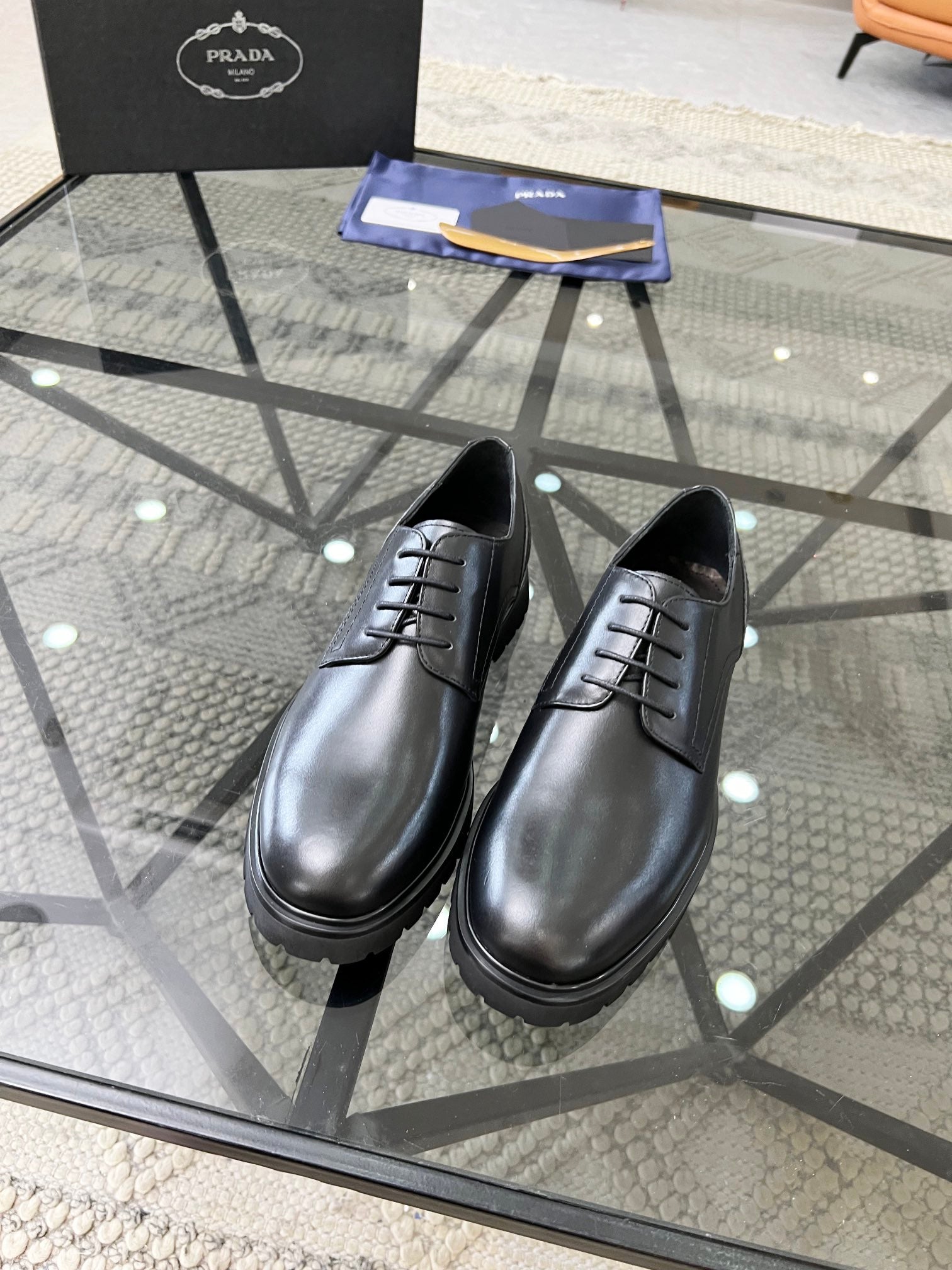 PRA LACE-UP SHOES IN BLACK CALFSKIN