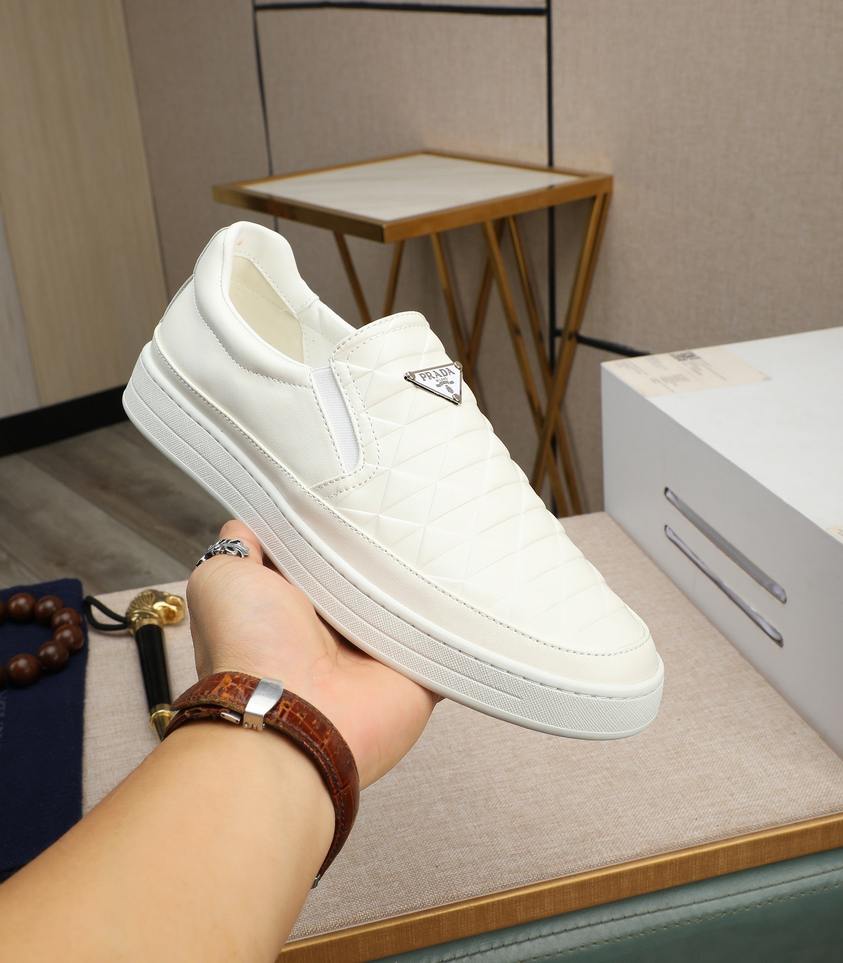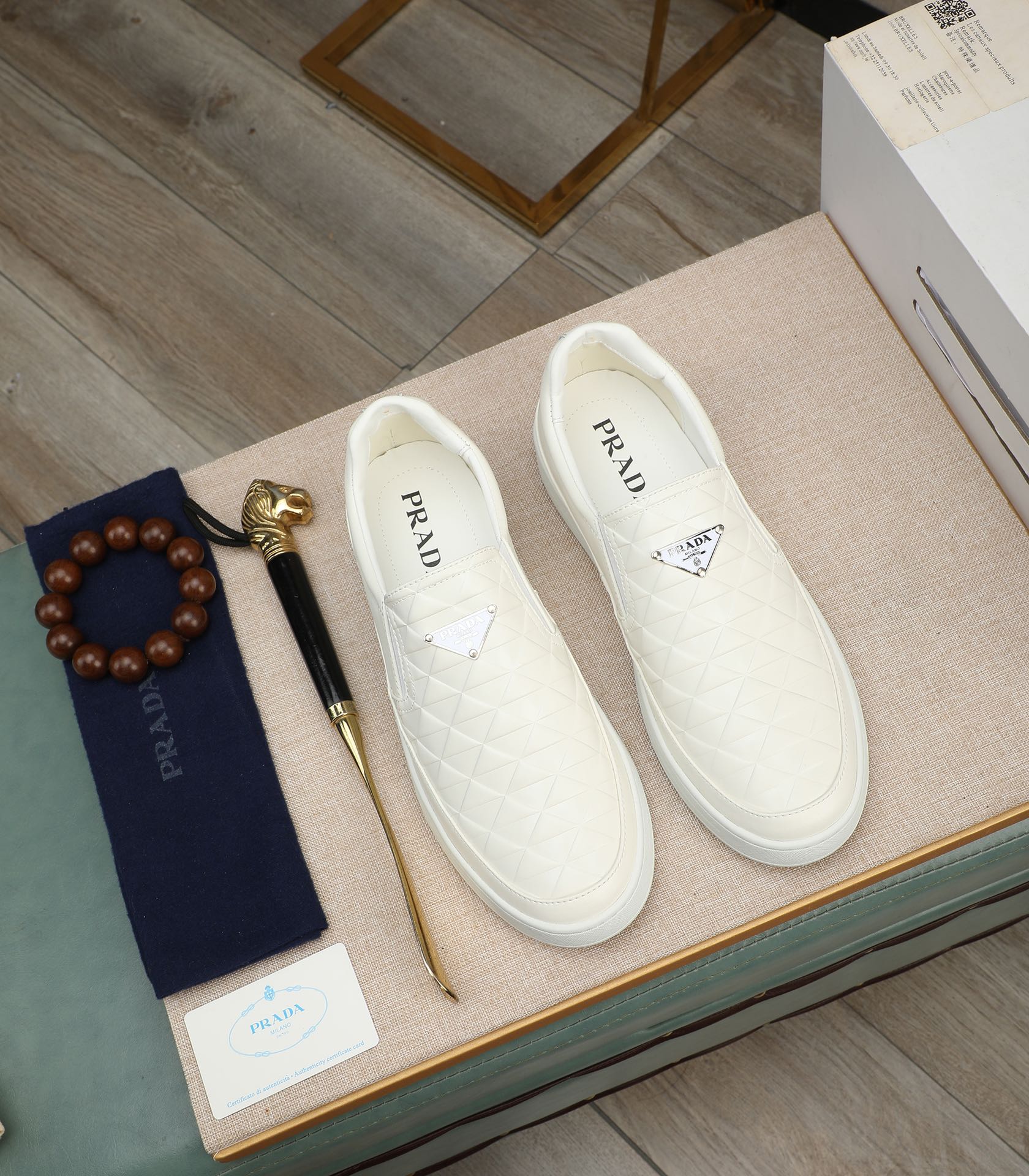 PRA LOAFER IN BEIGE CREAM EMBOSSED CALFSKIN