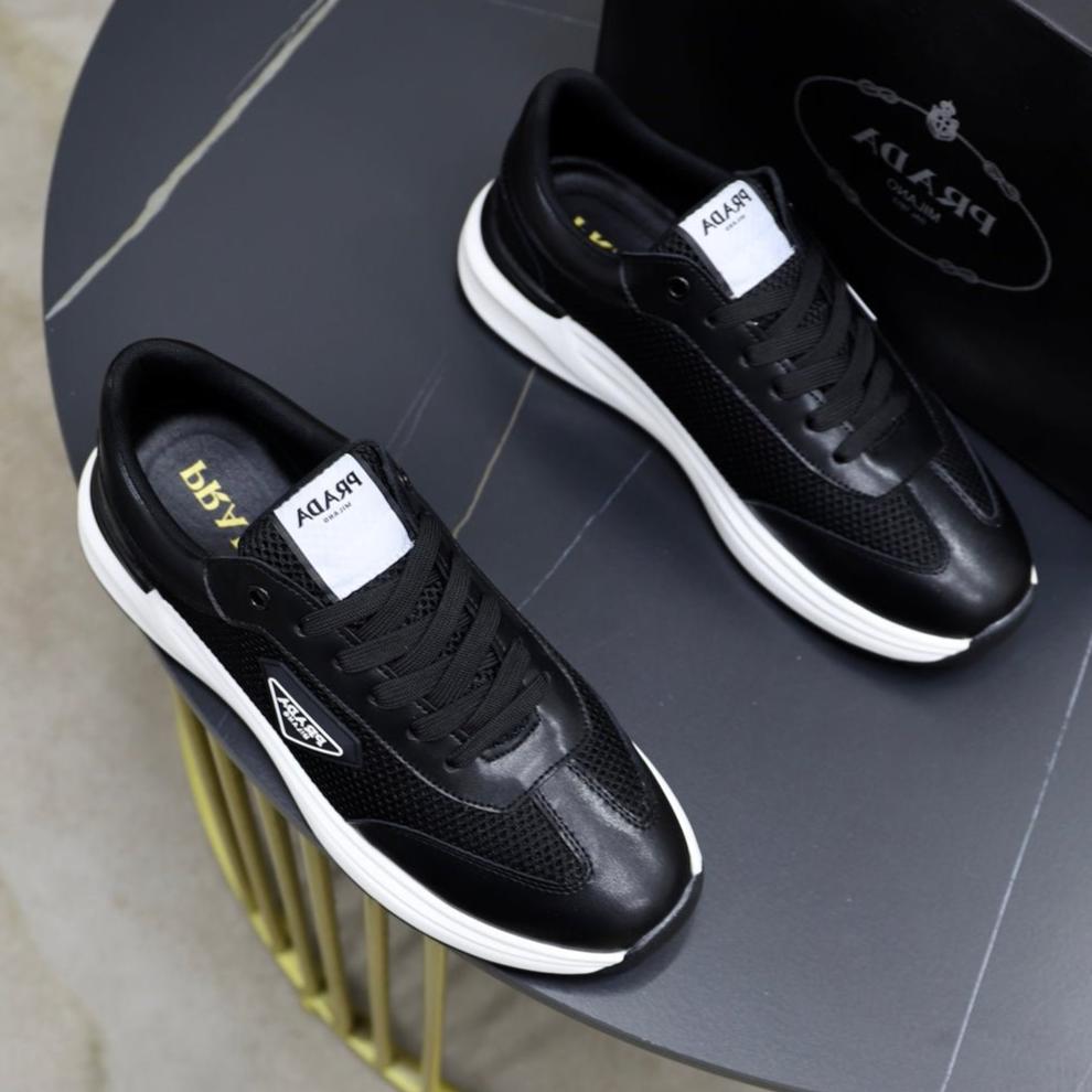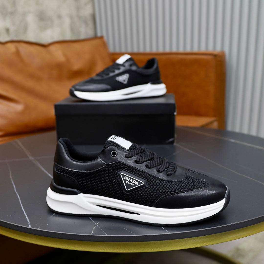 PRA SNEAKER IN BLACK CALFSKIN AND MESH FABRIC