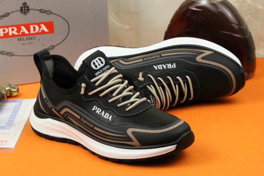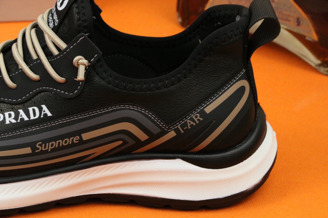 PRA SNEAKER IN BLACK MIX GOLD CALFSKIN AND BREATHABLE MESH