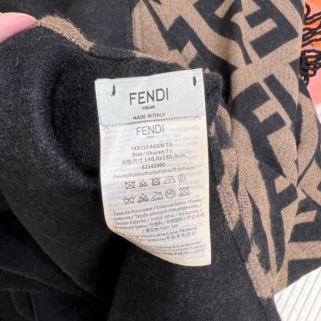 FF 170 CM SCARF IN CAMEL BROWN MIX BLACK CASHMERE AND WOOL