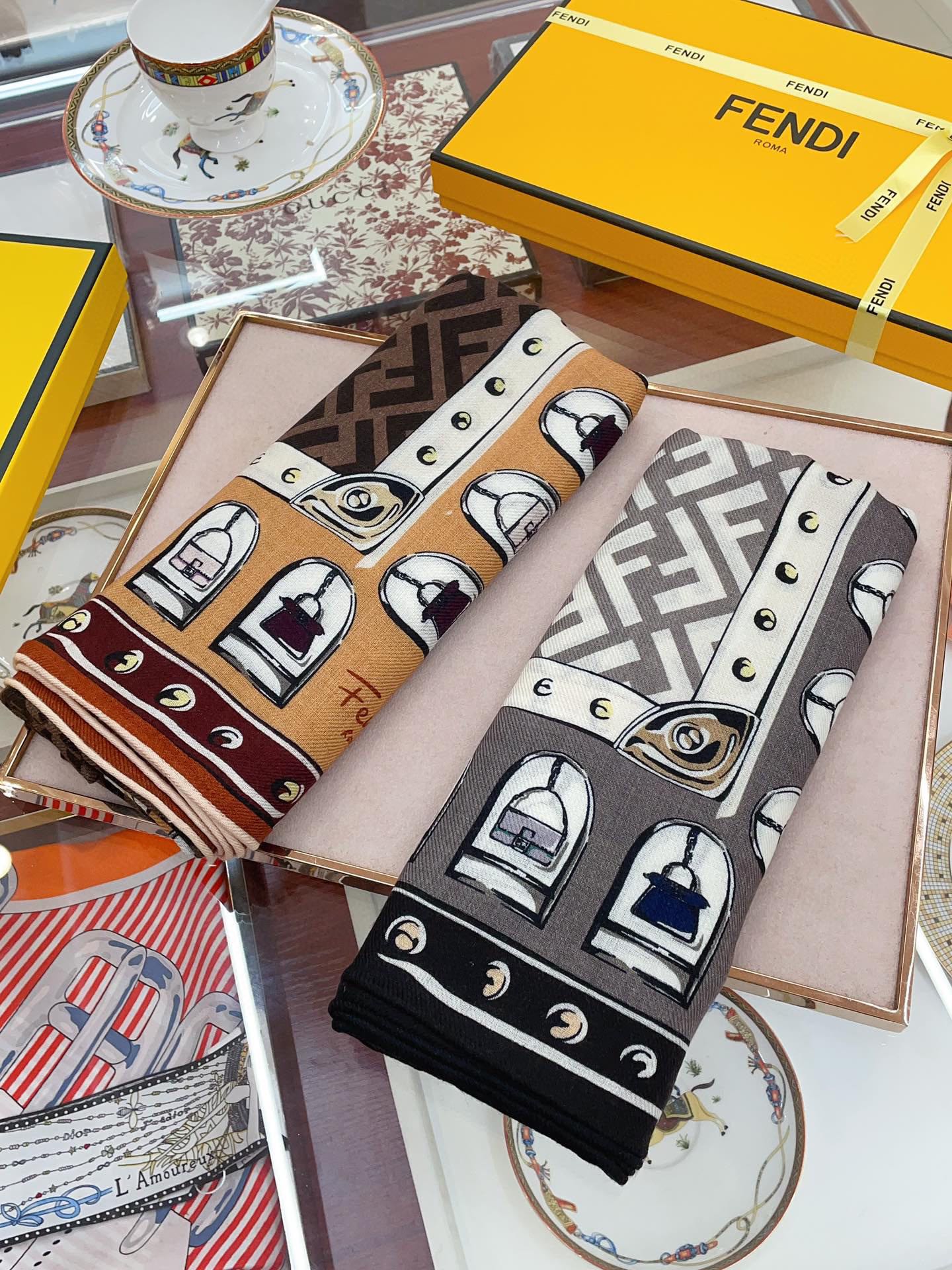 FOULARD 140 CM IN LIGHT GREY FF SILK CASHMERE