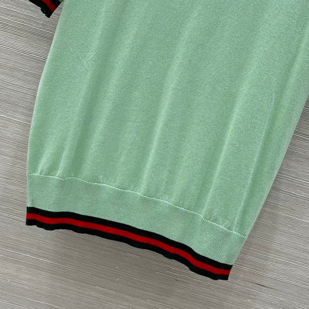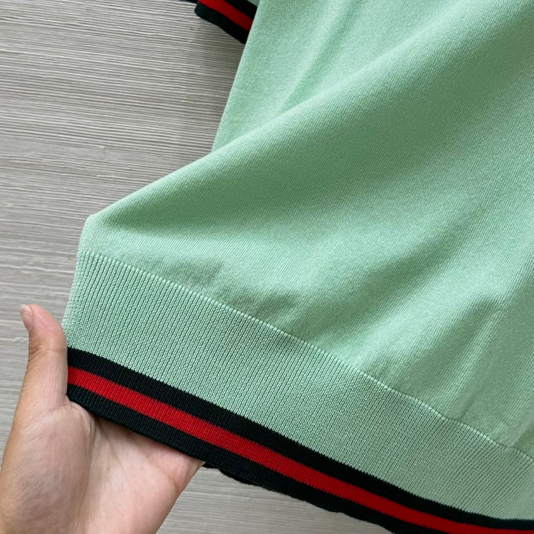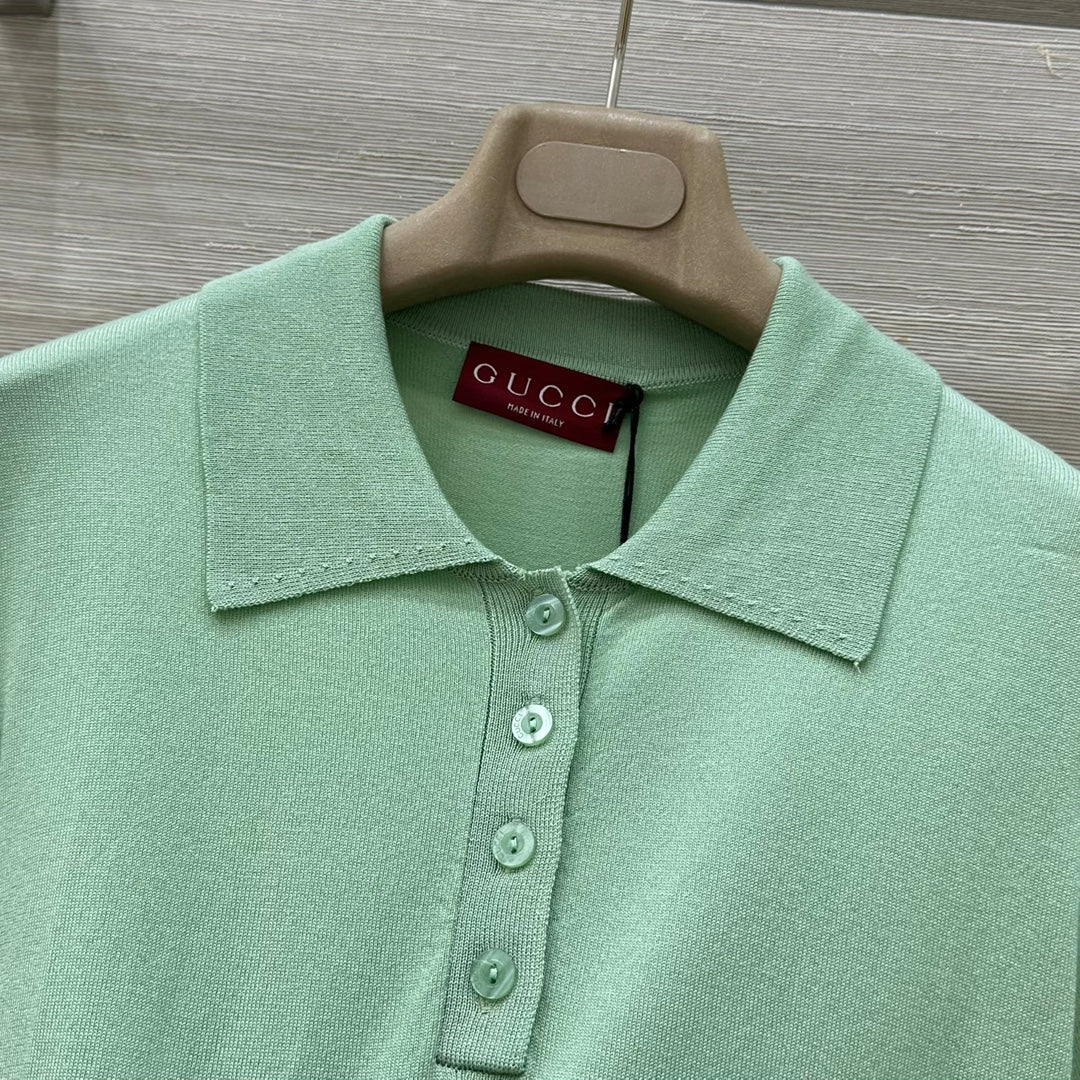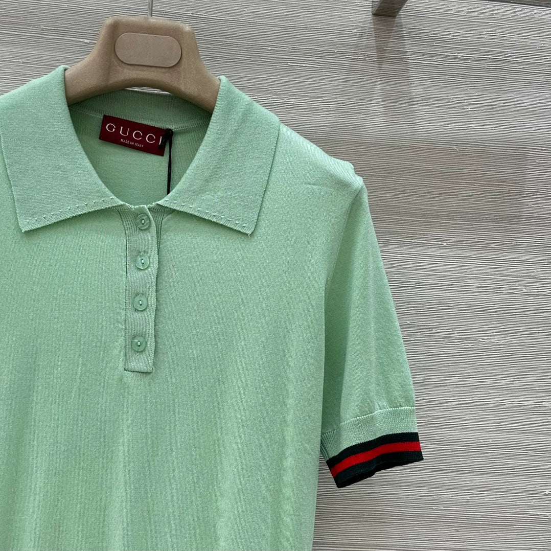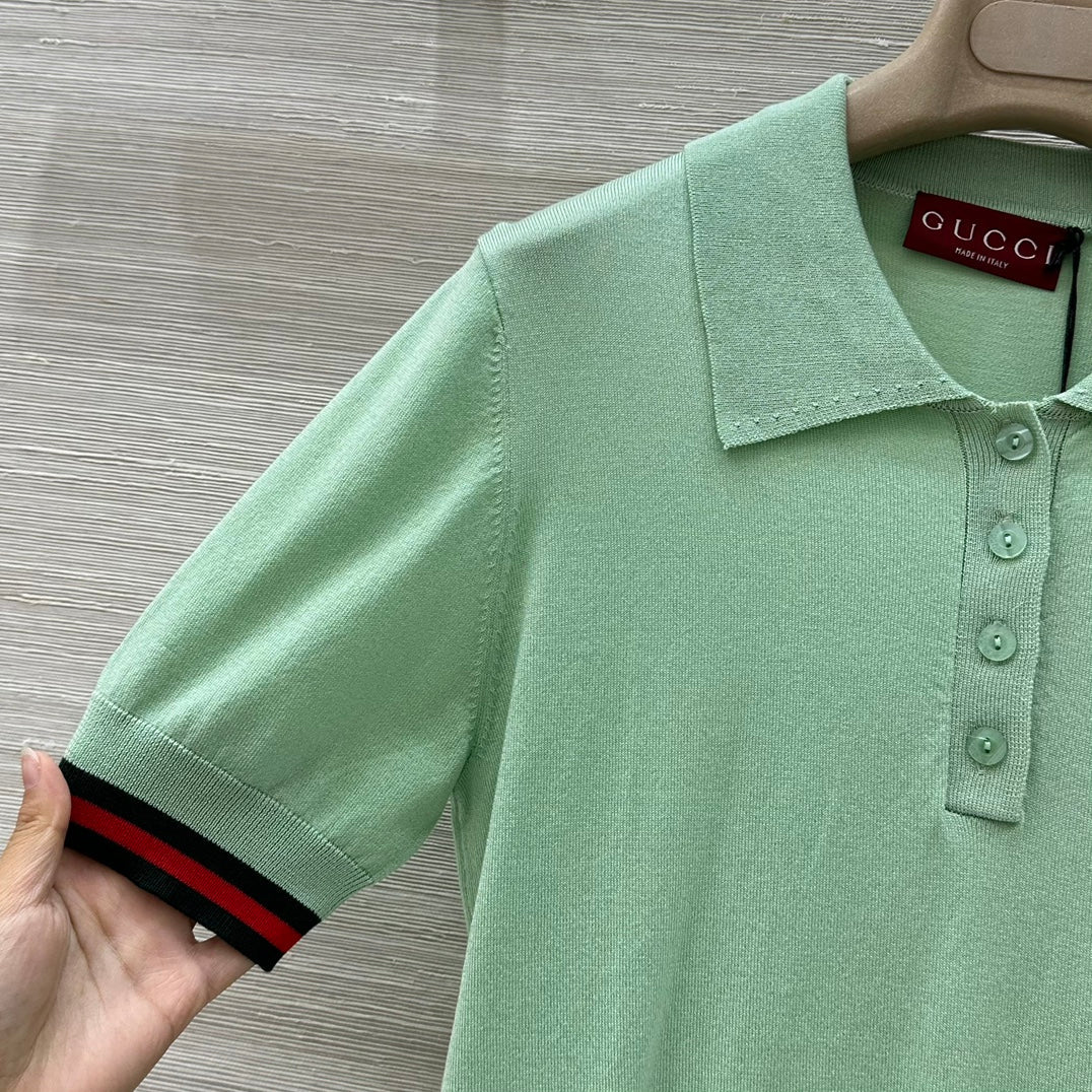 Gucci 25 Polo Short-sleeved Top Green Cashmere