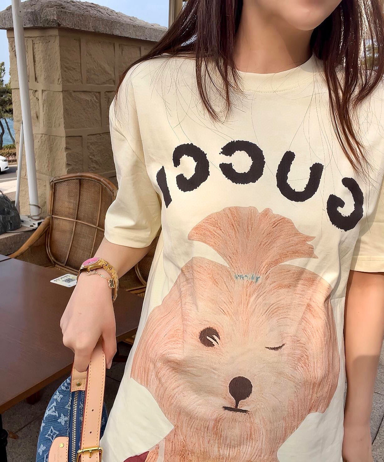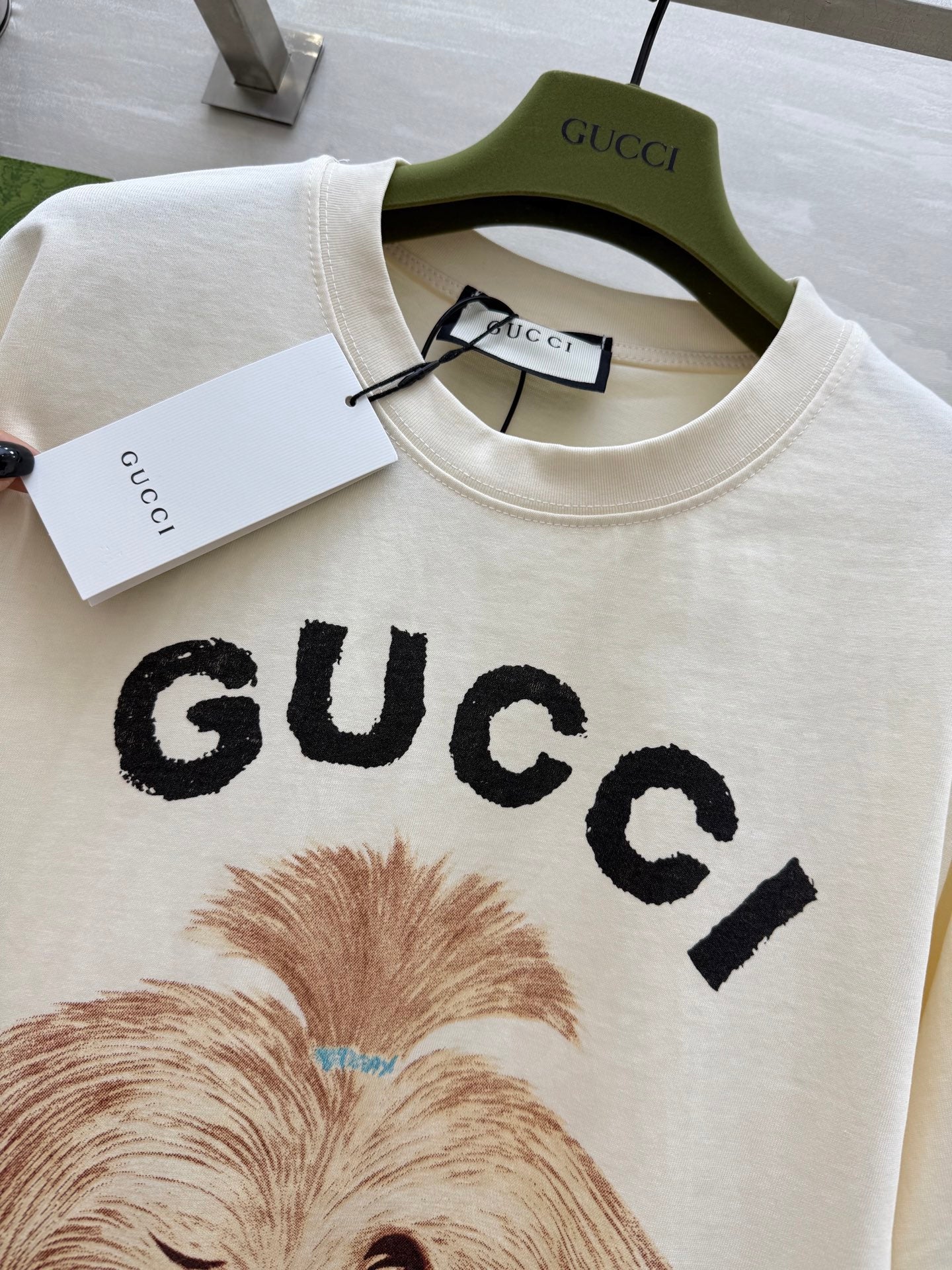 Gucci 25 Puppy Short-sleeved T-shirt Beige Brown Cotton