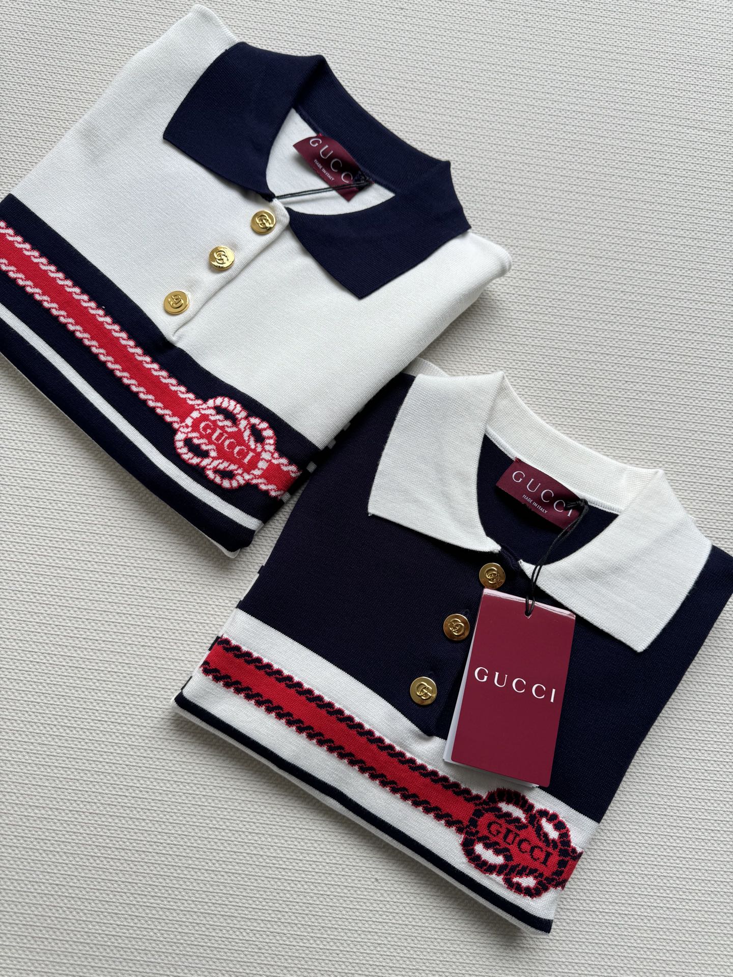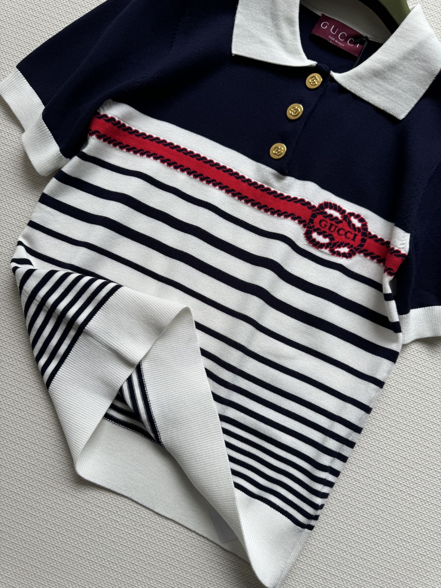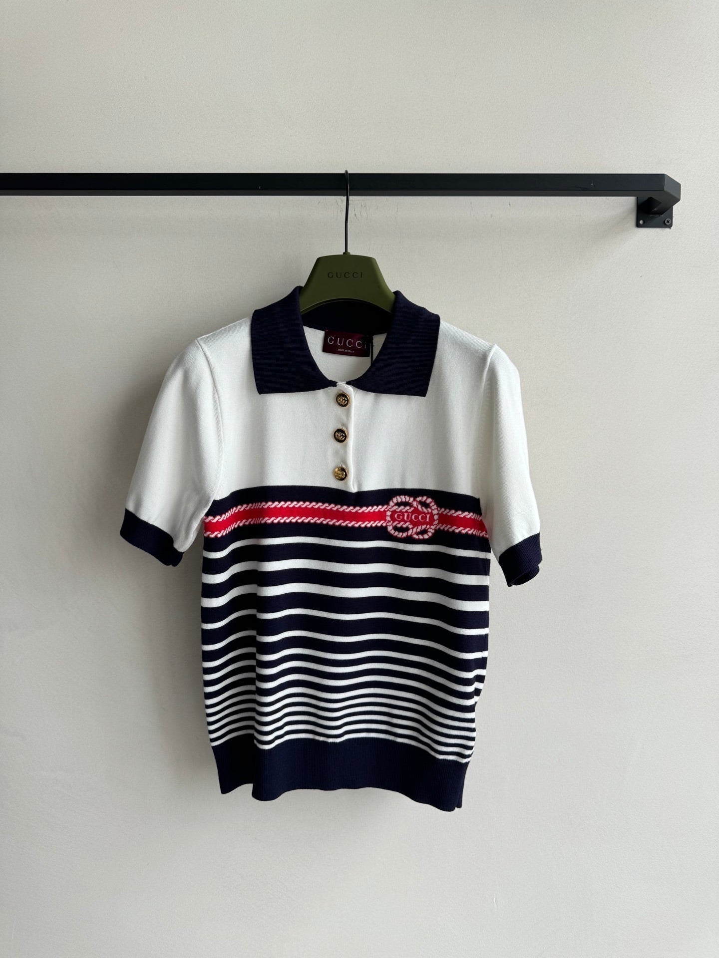 Gucci Striped Polo Knitted Top Cotton