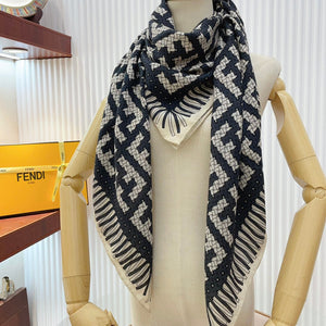 FF PONCHO 140 CM SCRAF IN BLACK MONOGRAM SILK CASHMERE