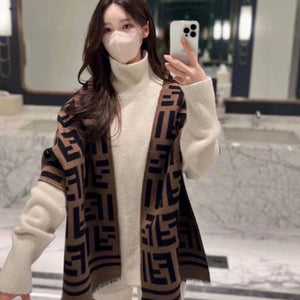 FF SCARF 180 CM IN MEDIUM BROWN MONOGRAM WOOL AND CASHMERE 411831