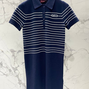 Gucci Striped Polo Knitted Top Dark Blue White Cotton