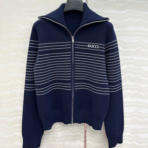 Gucci Knitted Zipper Jacket Dark Blue Viscose