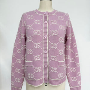 Gucci Knot Jacquard Knitted Cardigan Pink Wool