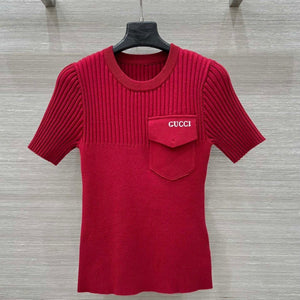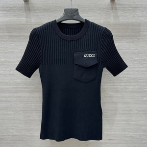 Gucci 25 Knitted Round Neck Short-sleeved Top Dark Blue Wool