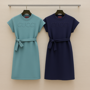 Gucci 2025 Denim Dress Blue Brown Cotton