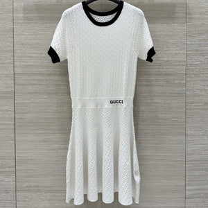 Gucci 25 Knitted Round Neck Short-sleeved Dress White Viscose