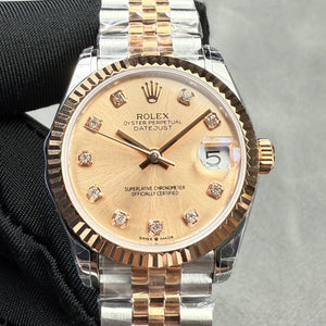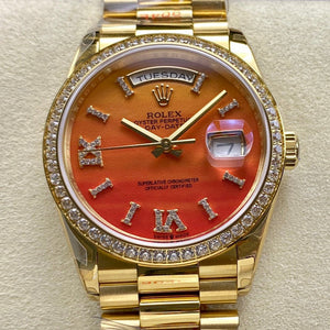 ROLEX Day-Date 36mm Diamond Red Leather Pink Dial
