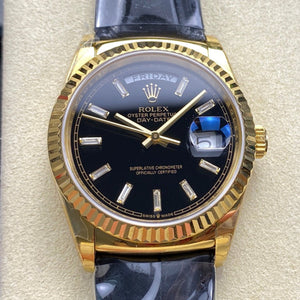 Rolex Day-Date 36mm Gold Black Dial Leather