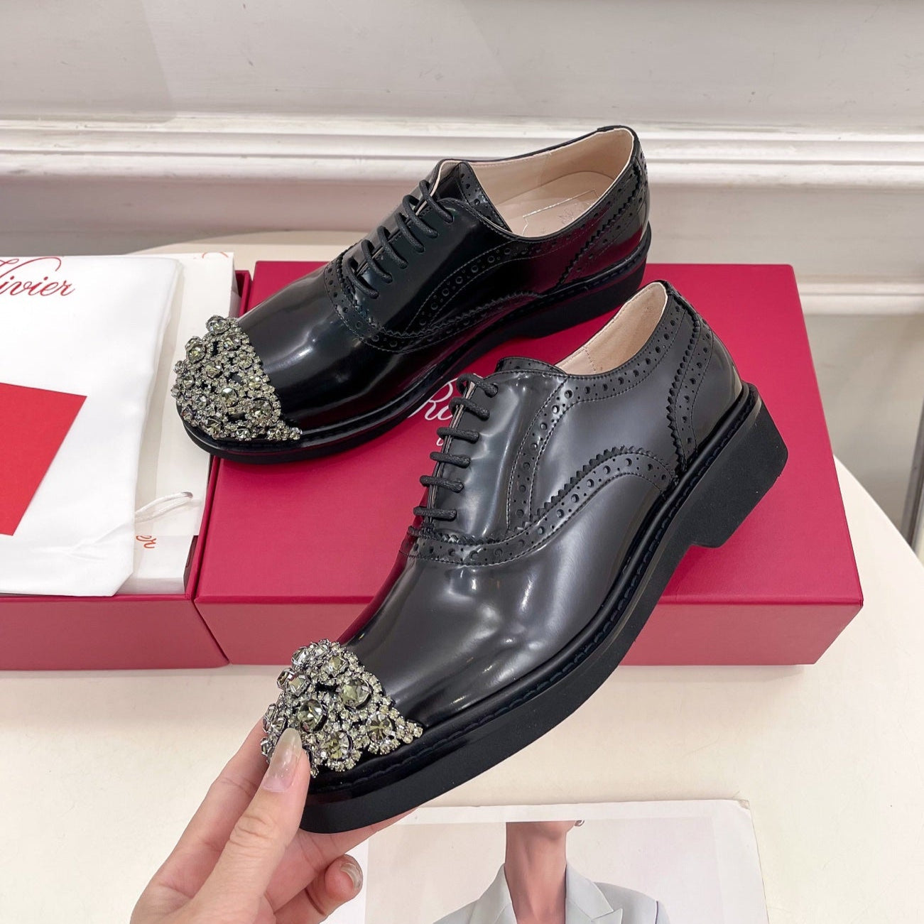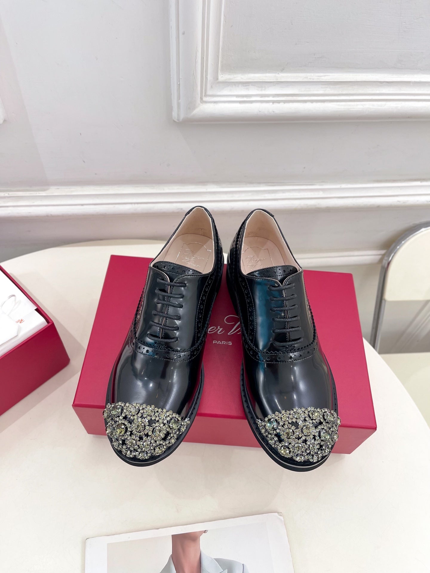 Viv 25 Baroque Rhinestone Derby Loafer Black Cowhide Leather 253580