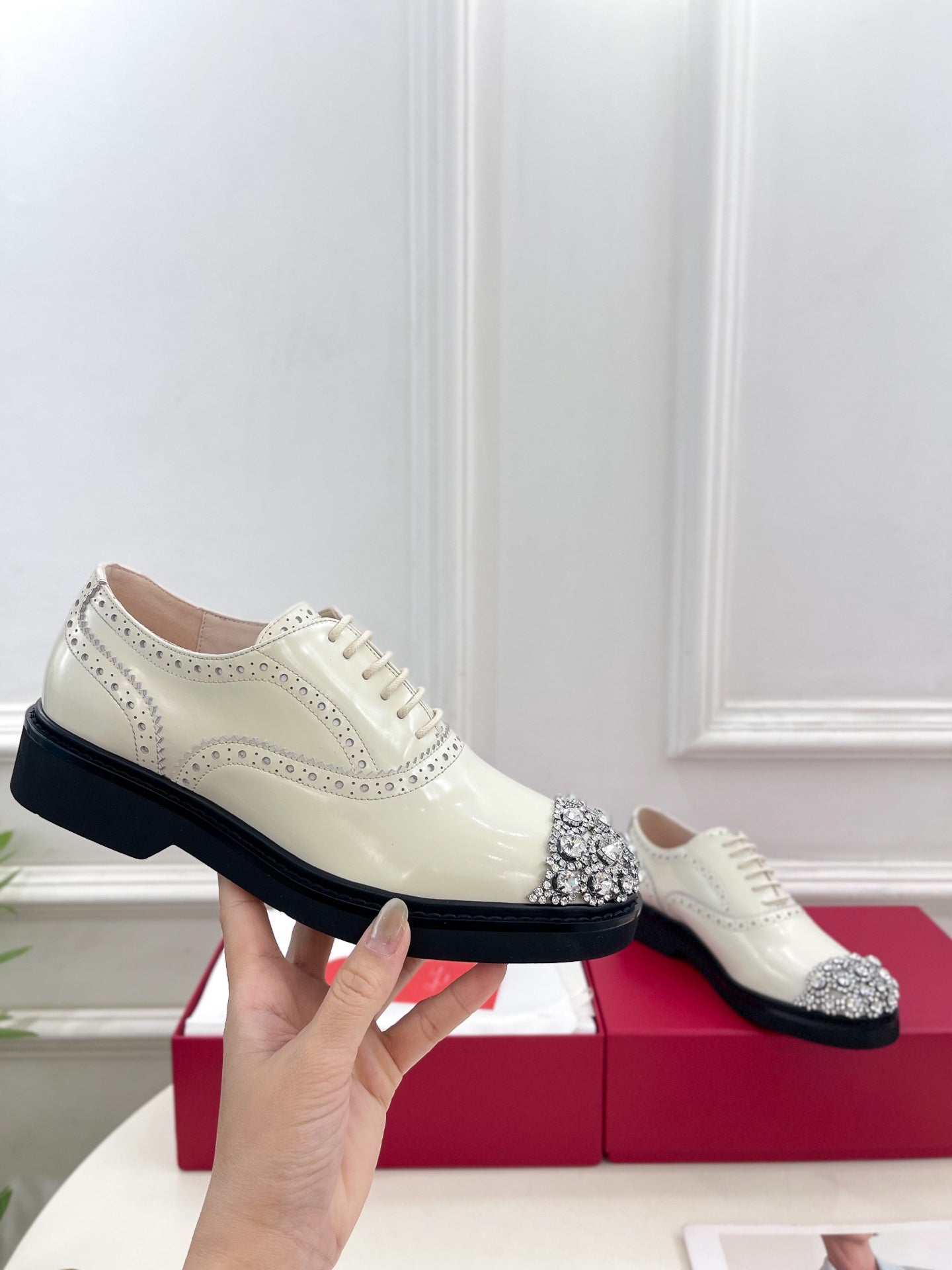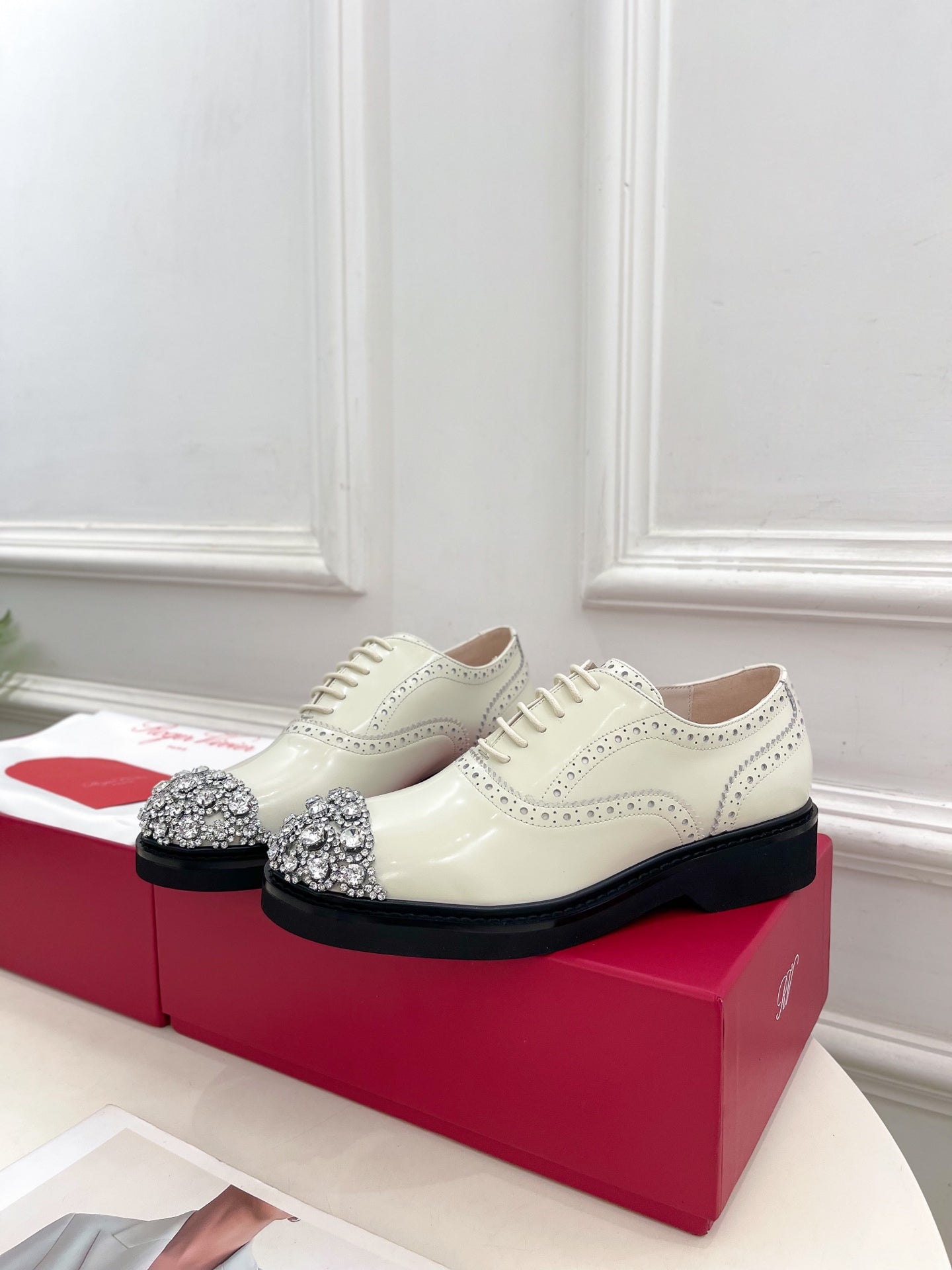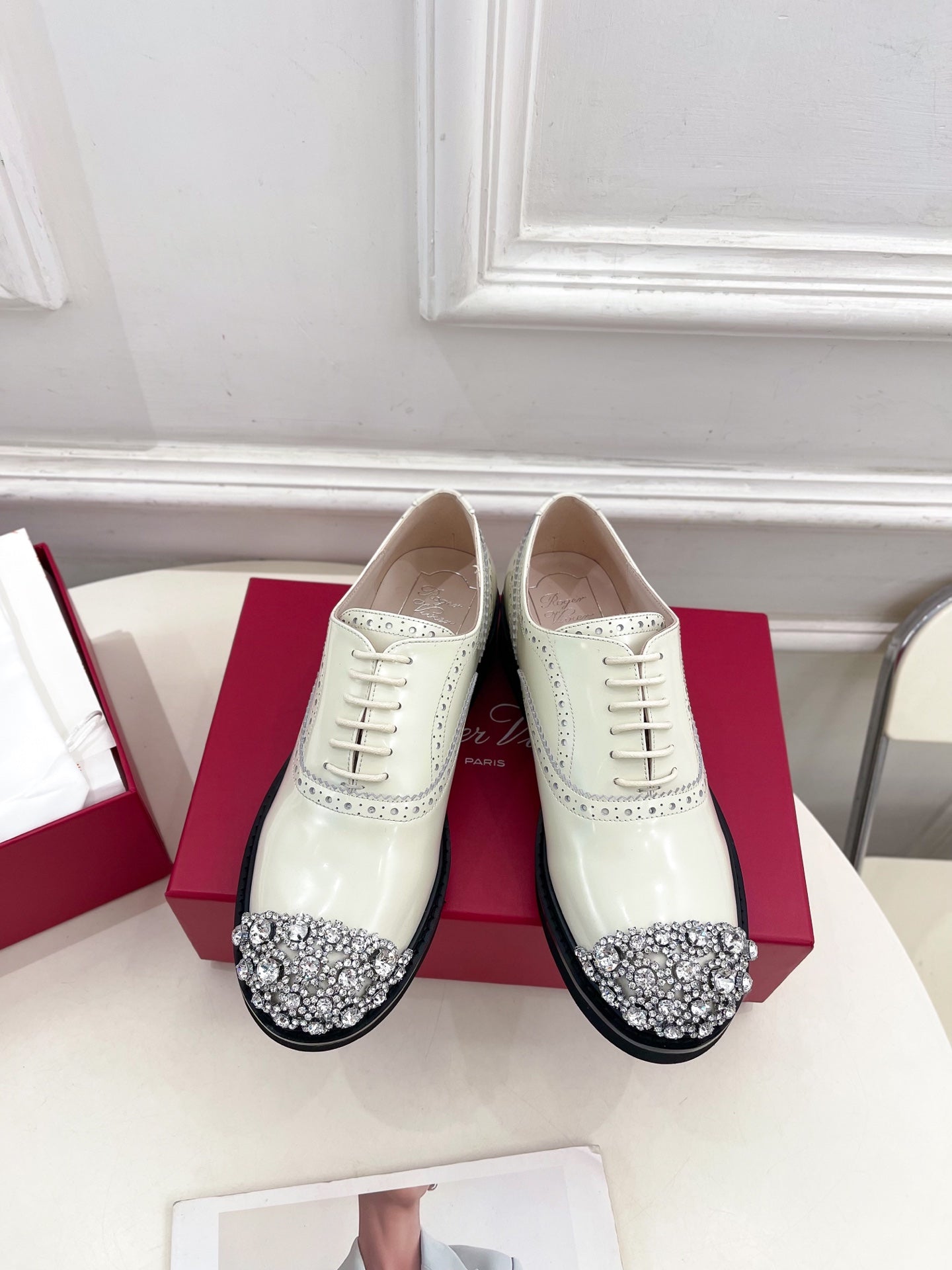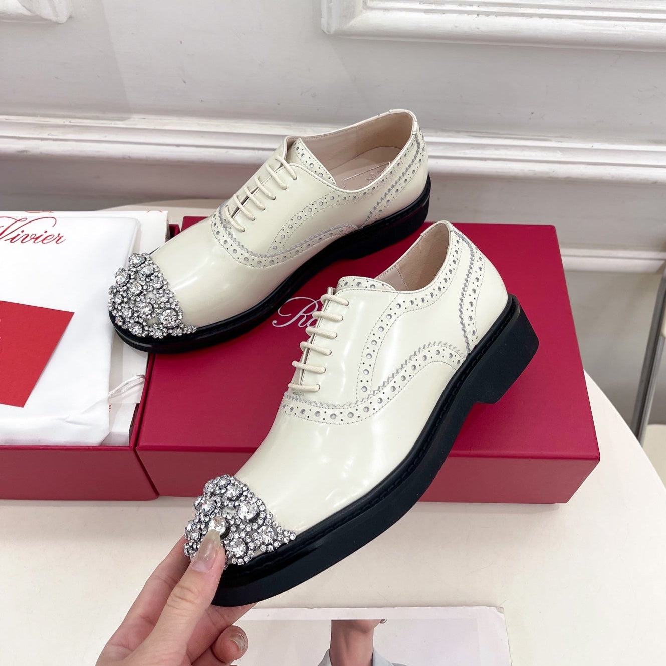 Viv 25 Baroque Rhinestone Derby Loafer Milky White Cowhide Leather 253581