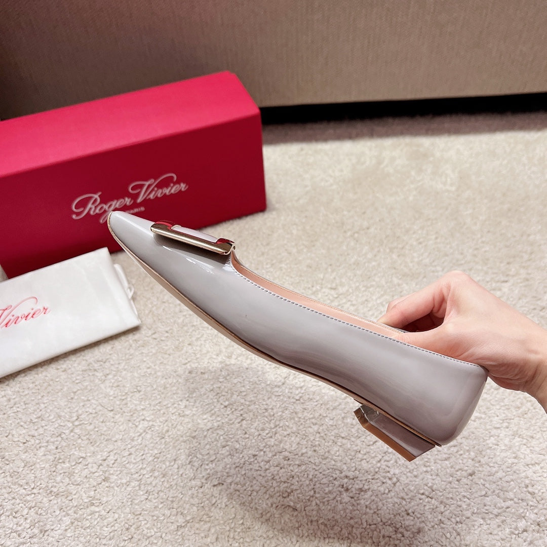 Belle Viv Buckle Square Pumps Grey Italian Imported Leather