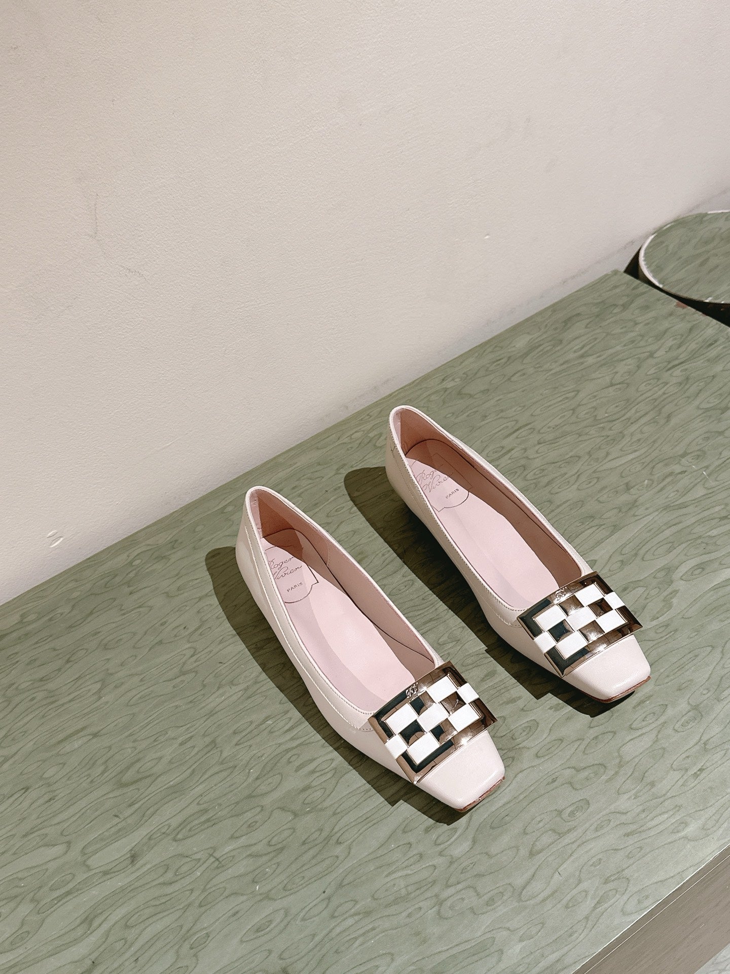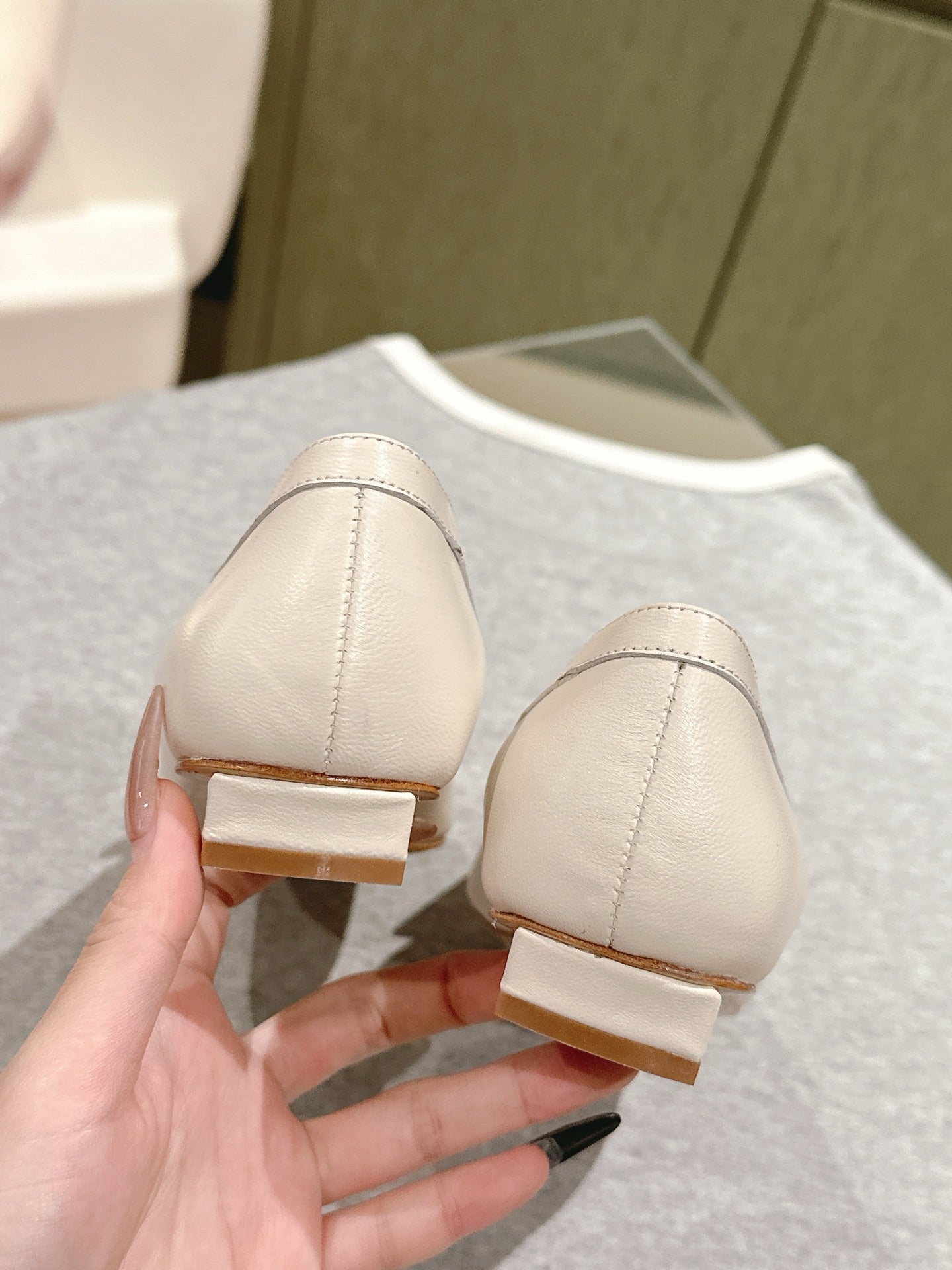 Viv 25 Jewel Flats Beige Imported Cowhide 241906